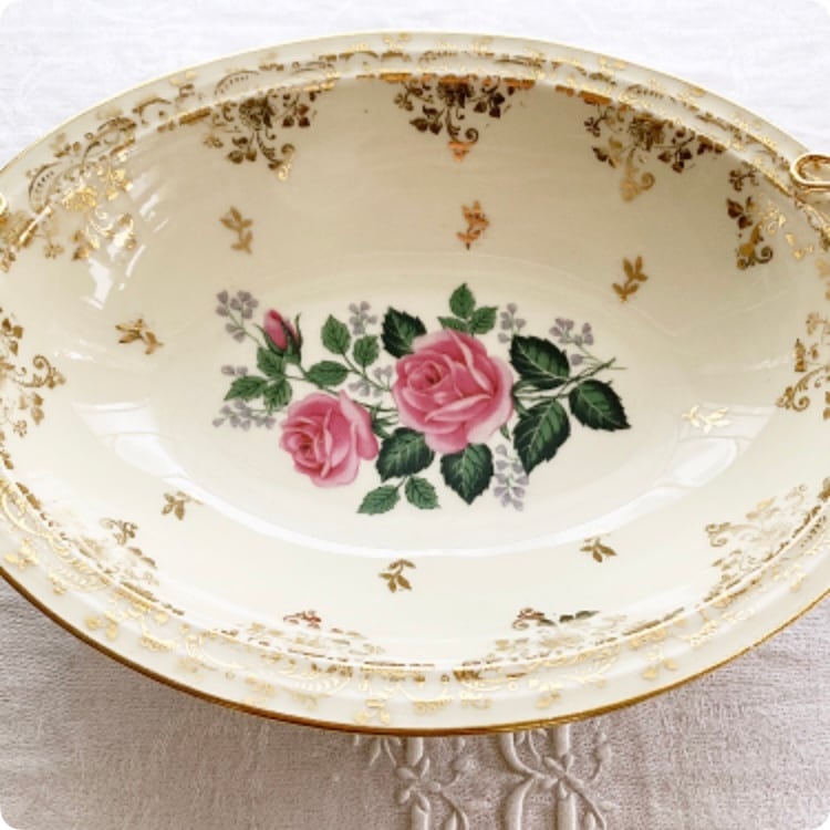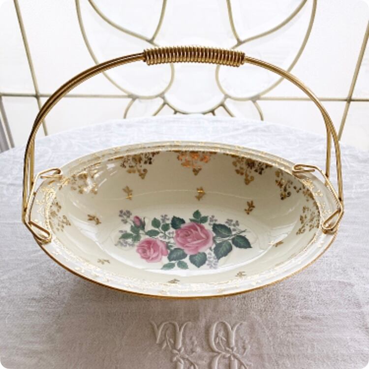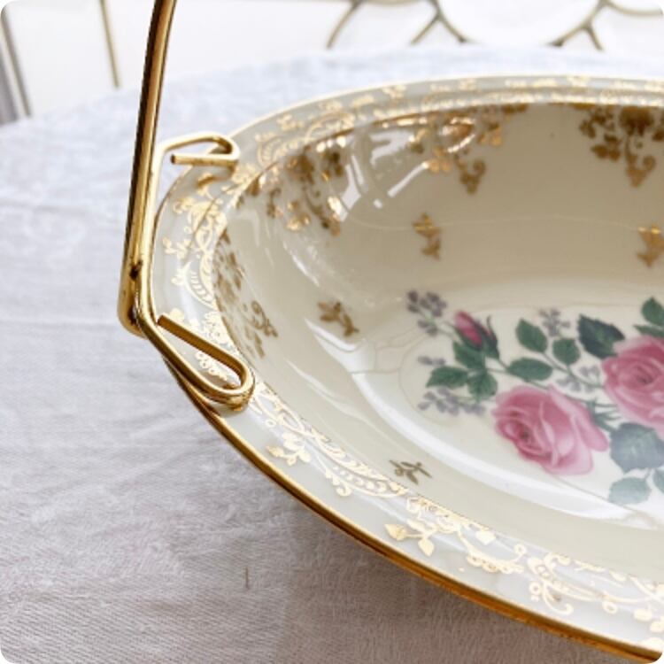 ■華やかな薔薇が魅力的な持ち手付フルーツ皿