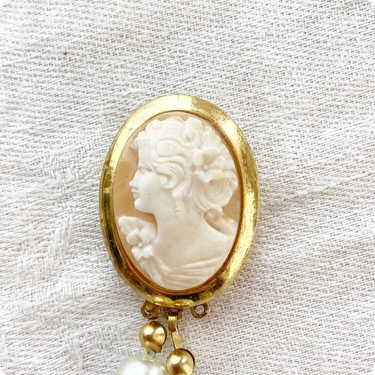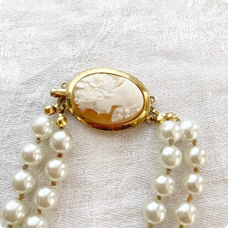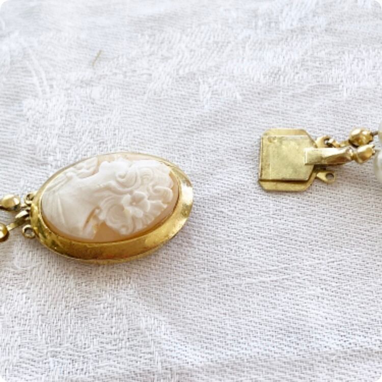 【フランス直輸入】ワンポイントのCAMEOが品格をますヴィンテージ パール ネックレス
