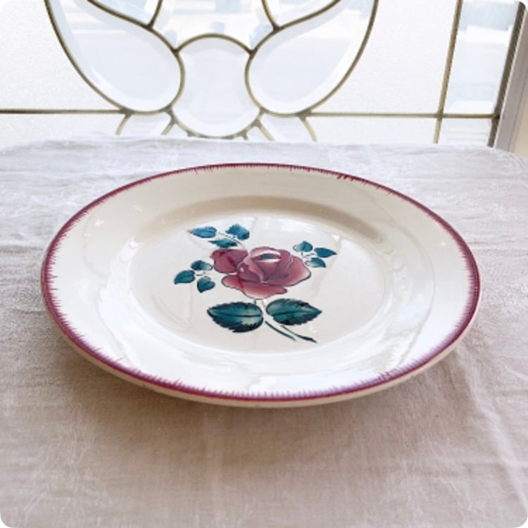 フランスから直輸入したこちらのサルグミンヌ ディナー皿は、シンプルで愛らしい薔薇の絵柄が特徴的な素敵なアイテムです。