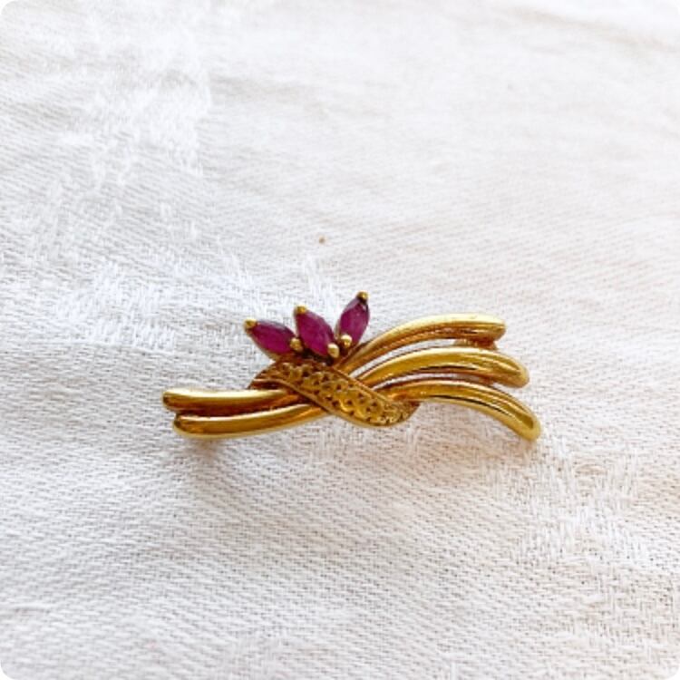 こちらはフランスから直輸入した、可愛らしいピンクのワンポイントが特徴のヴィンテージブローチです。