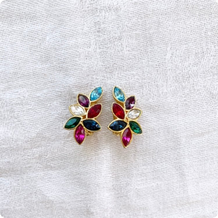 フランスから届いたばかりのレインボーカラーが個性的なヴィンテージイヤリングです。