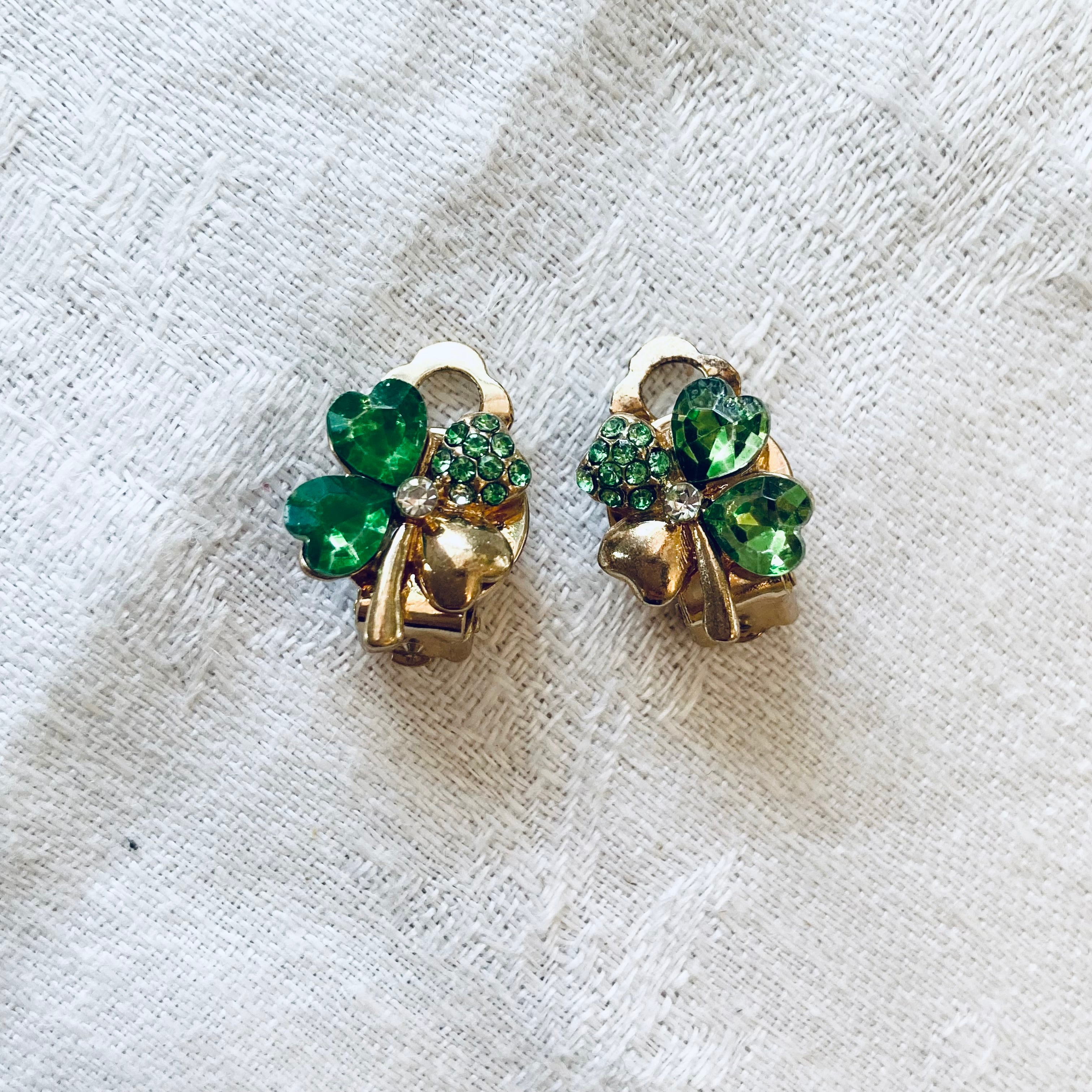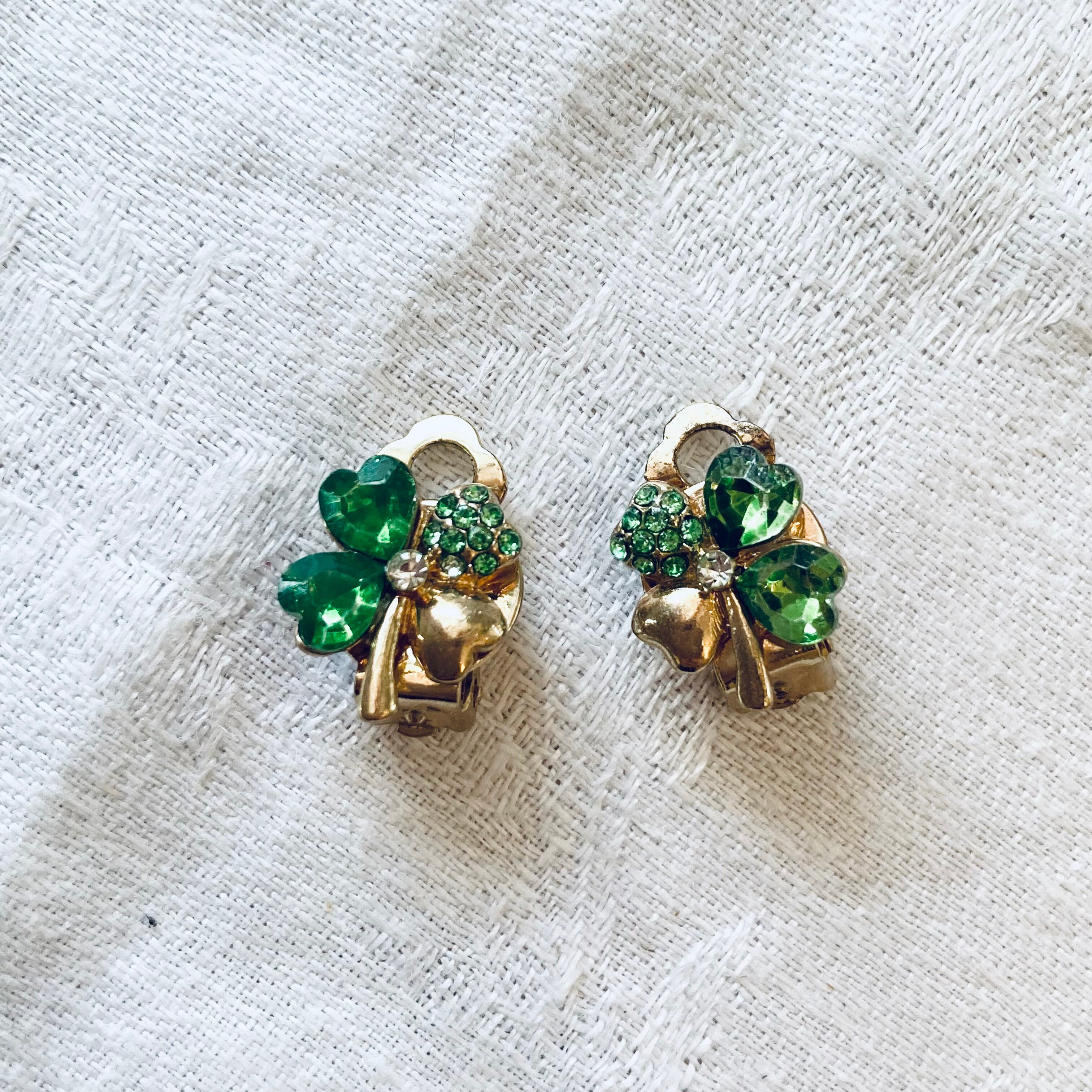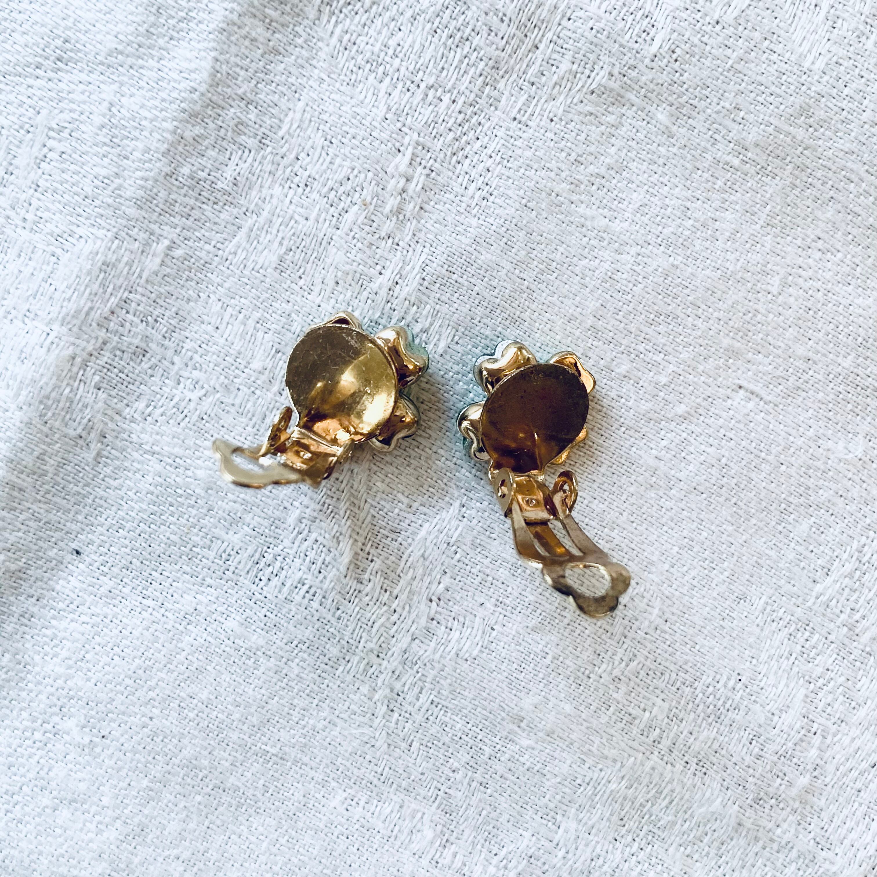 フランスから届いたばかりの幸運を呼ぶクローバーモチーフのヴィンテージイヤリングです。