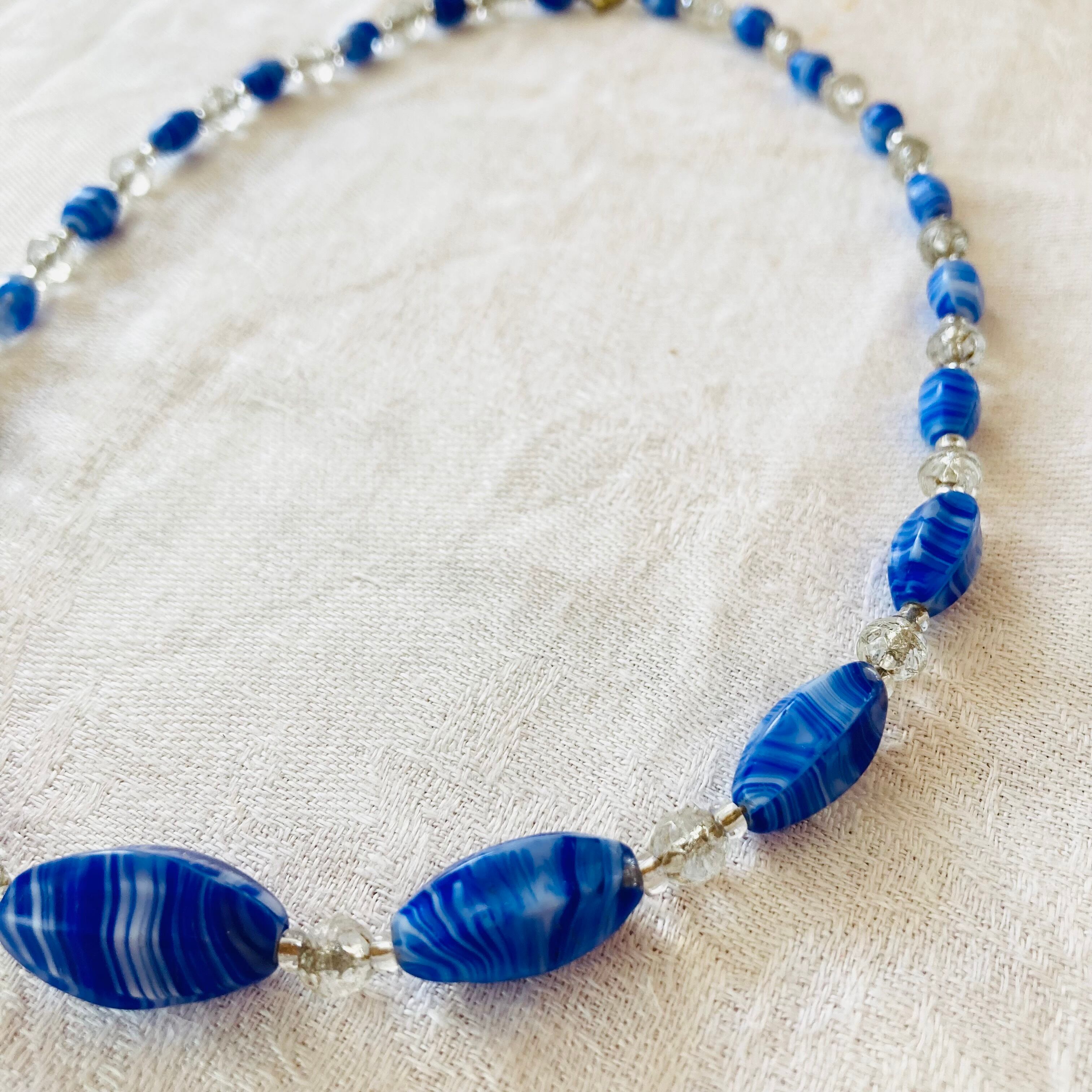 【フランス直輸入】ブルーガラスが美しい ヴィンテージネックレス