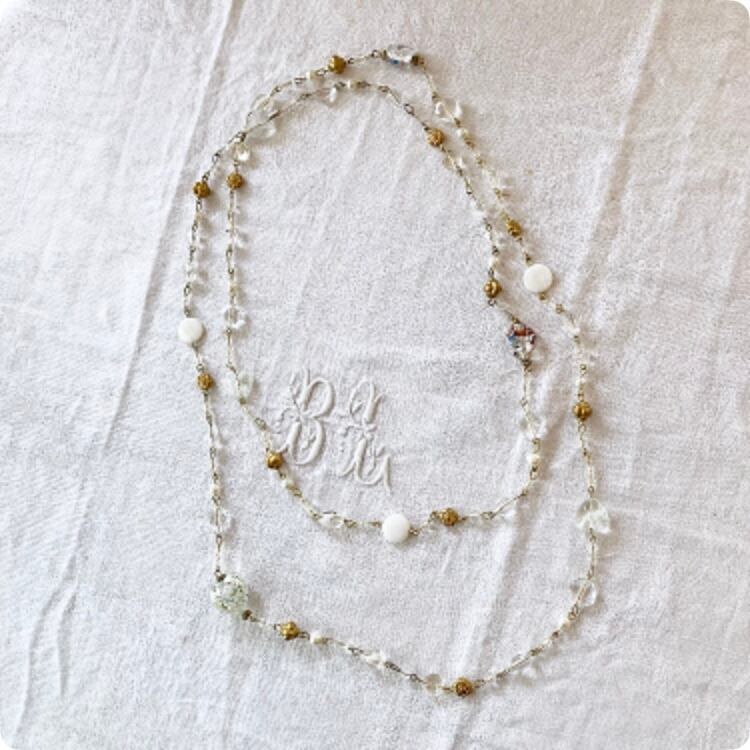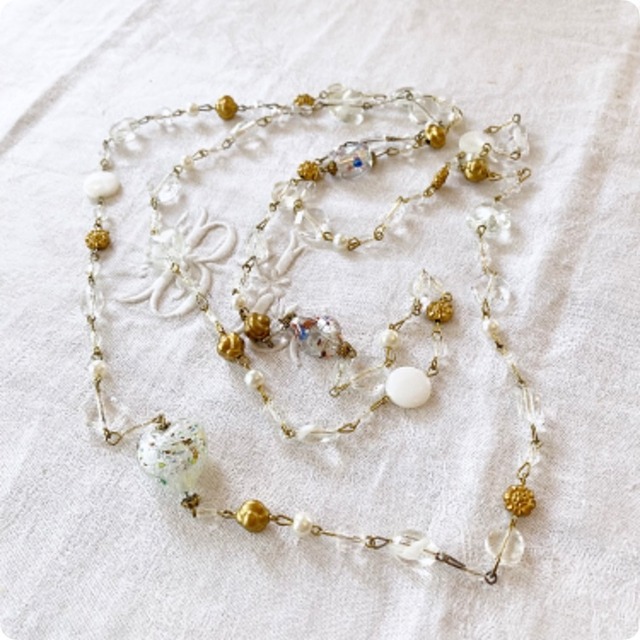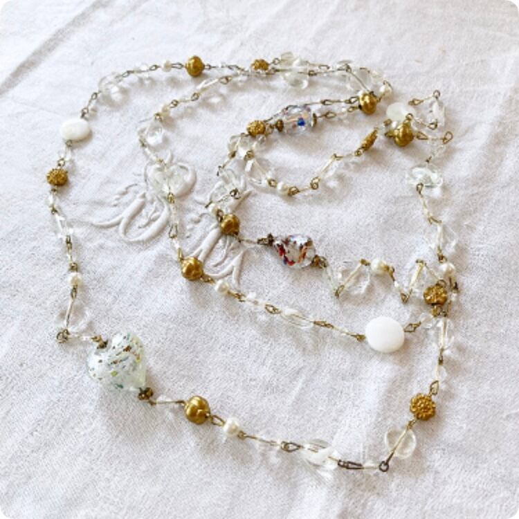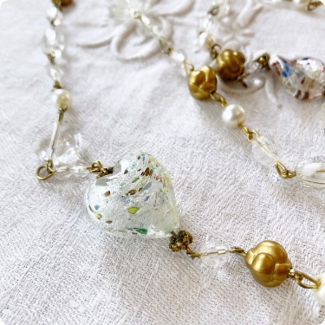 フランスから届いたばかりのガラスのハートモチーフが可愛らしいヴィンテージロングネックレスです。