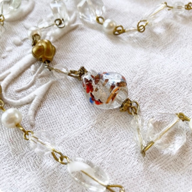 【フランス直輸入】ガラスのハートモチーフが可愛らしい ヴィンテージ ロングネックレス