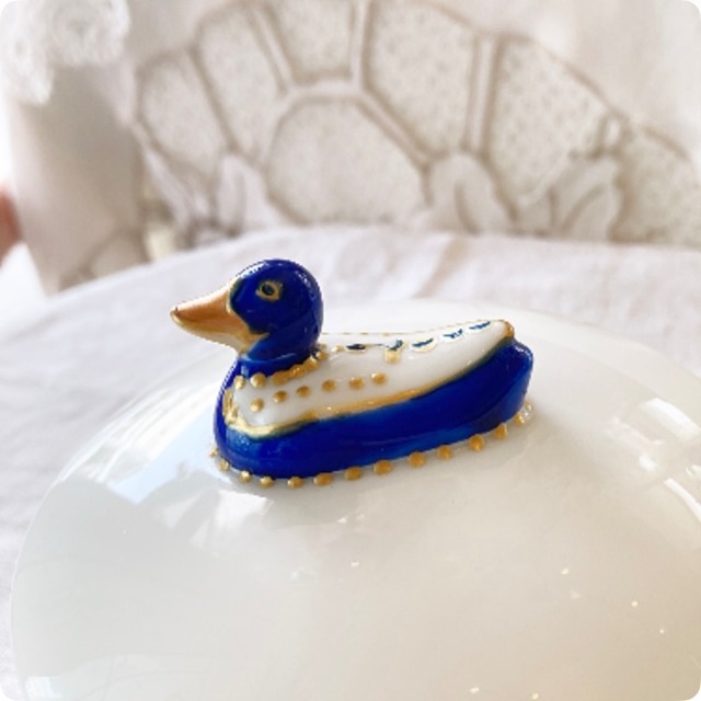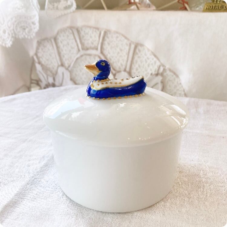 フランスから届いたばかりの、ユニークで可愛い鴨の陶器小物入れです。