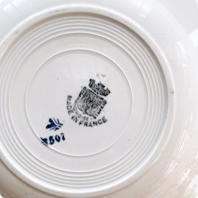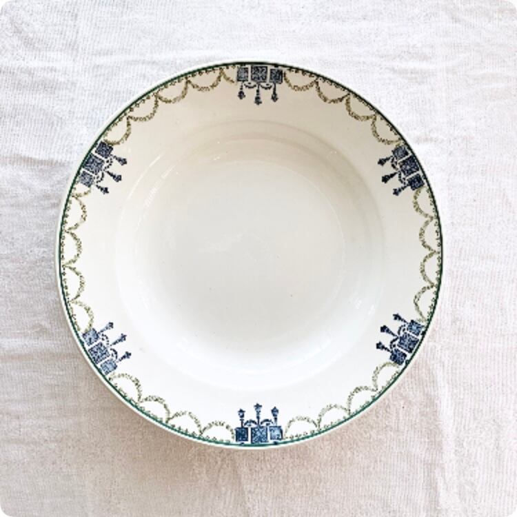 フランスから届いたばかりの、ブルーとグリーンのガーランドがデザインされたサンタマン深皿です。