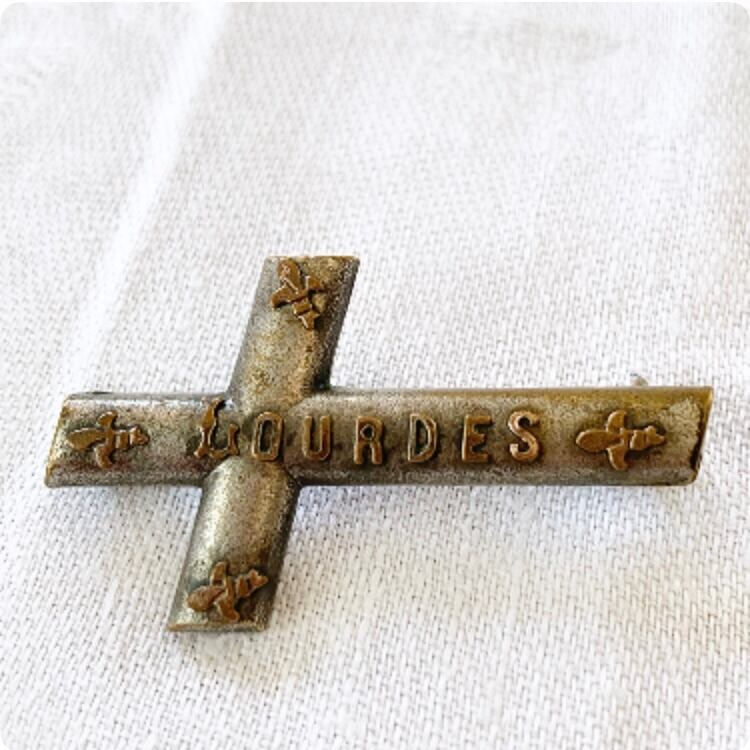 【フランス直輸入】十字架モチーフと百合の紋章 ルルド ヴィンテージブローチ
