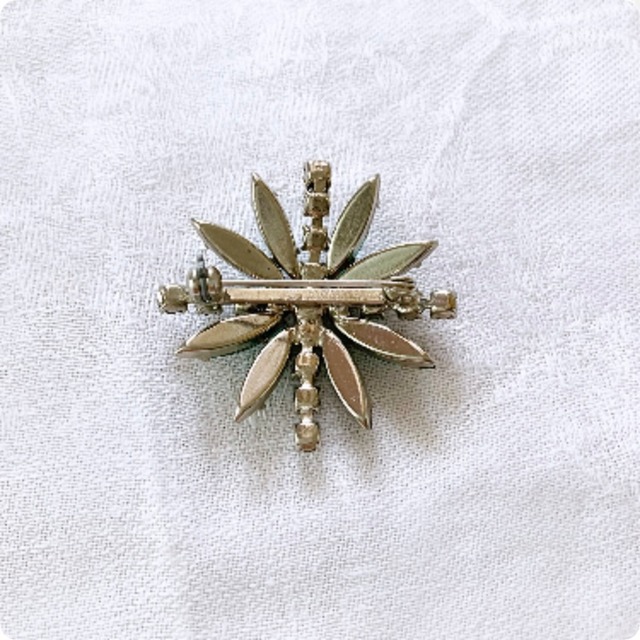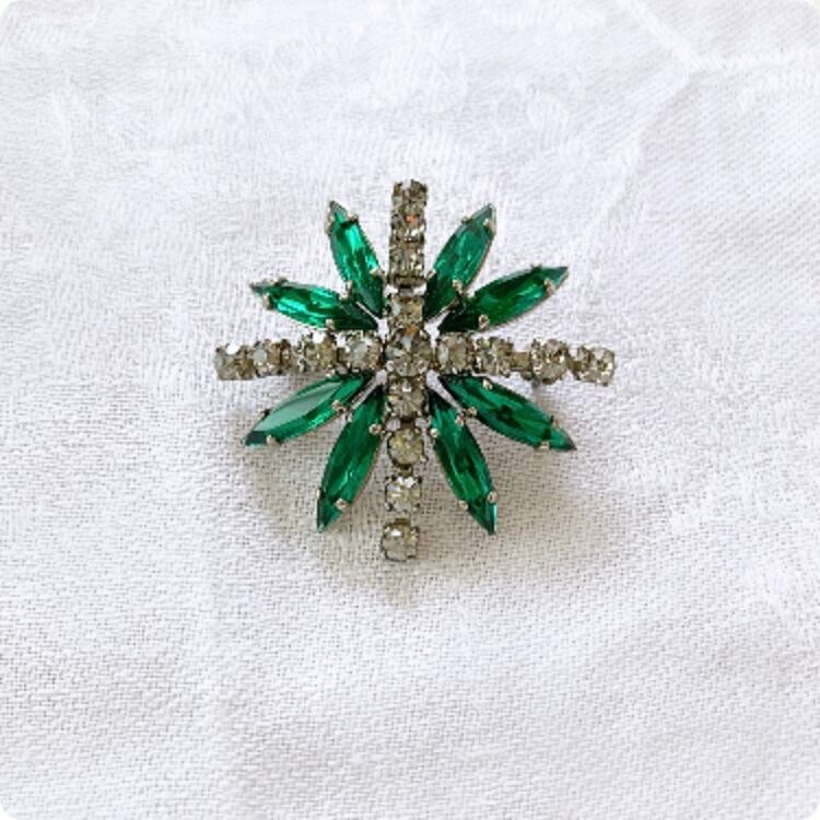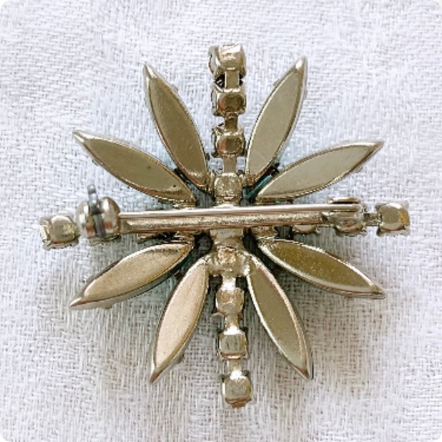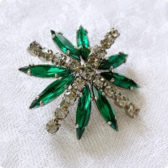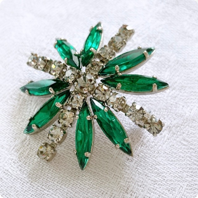 フランスから直輸入した、華やかな印象のグリーンカラーが美しいヴィンテージブローチです。