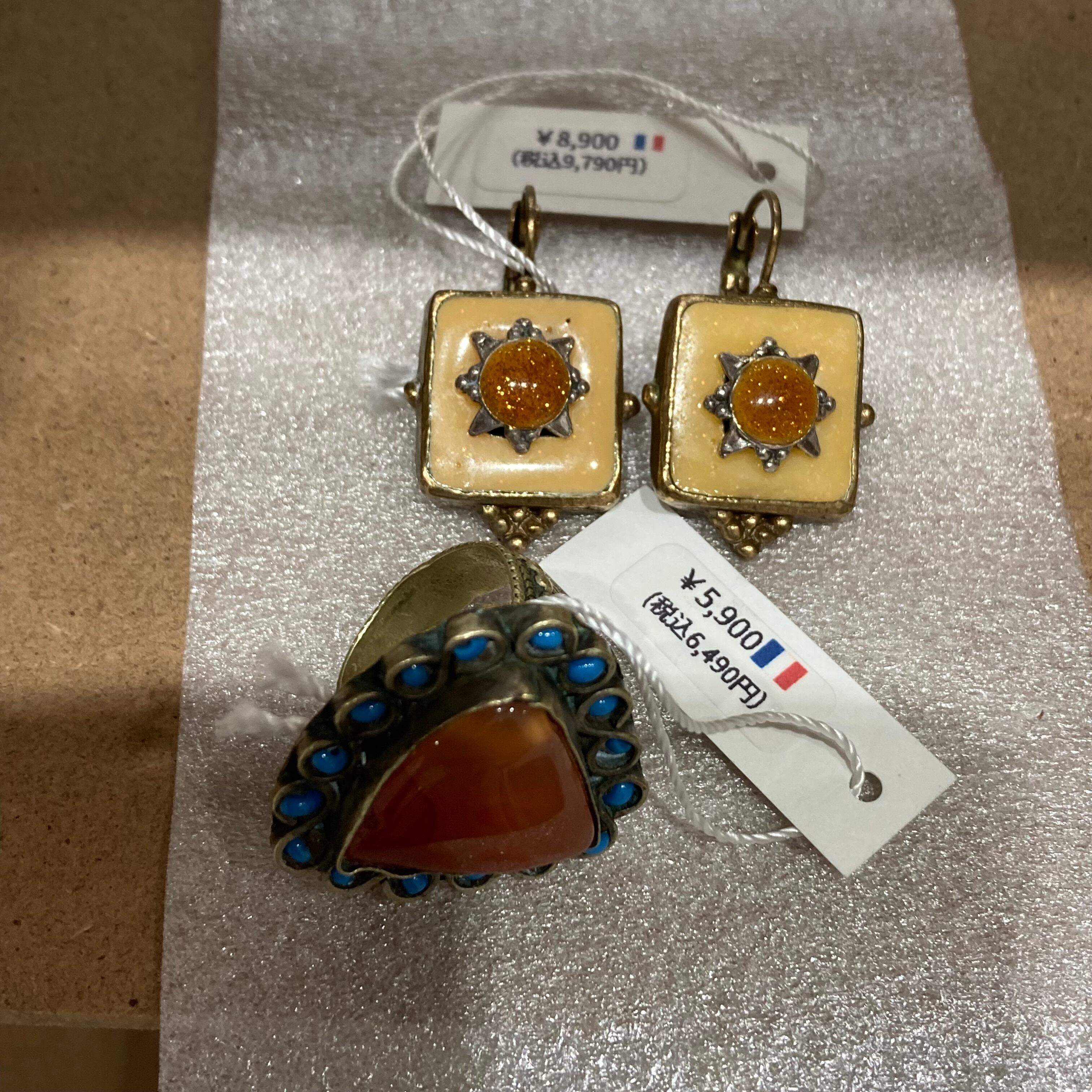 ※吉野様専用ページ【フランス直輸入】大人の魅力を引き立てる ブルー×ブラウンカラ― ヴィンテージリング&ピアス