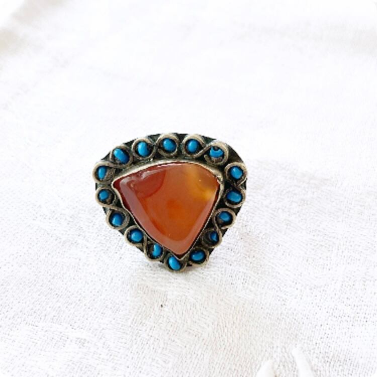 フランス直輸入のブルー×ブラウンの大人シックなデザインが魅力のヴィンテージリングです。