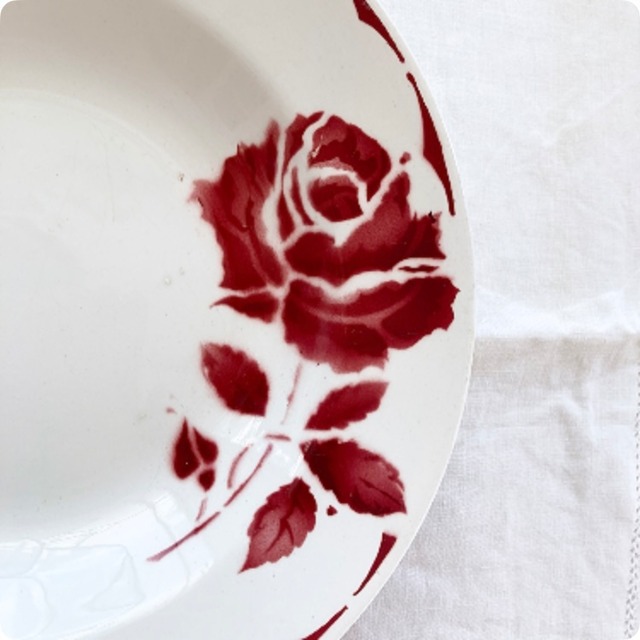 【フランス直輸入】存在感のある一輪の赤い薔薇が素敵 アンティーク スープ皿