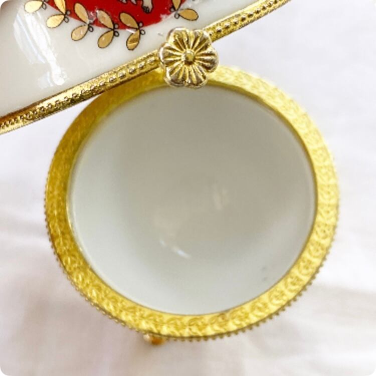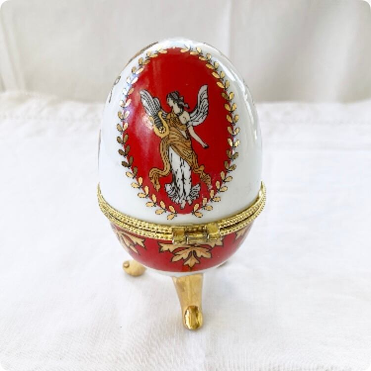 【フランス直輸入】女神の絵柄があしらわれた 美しい 卵型 陶器製小物入れ