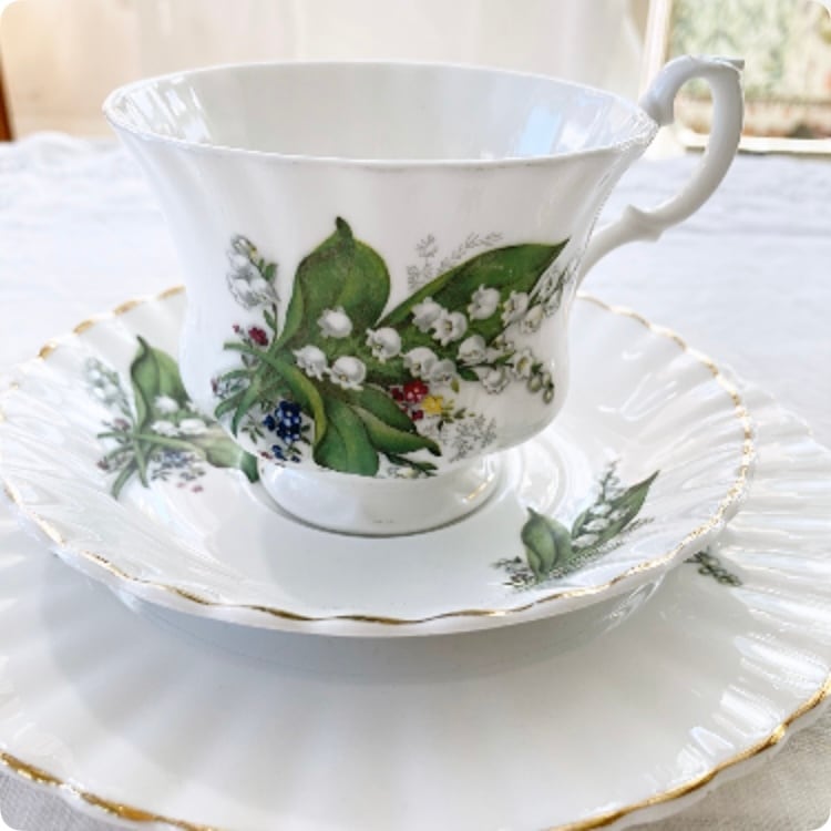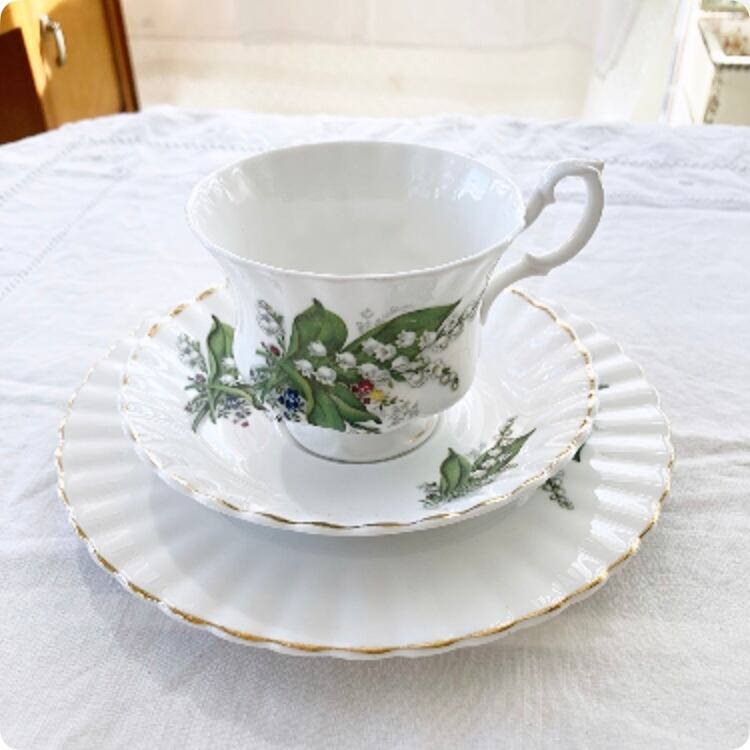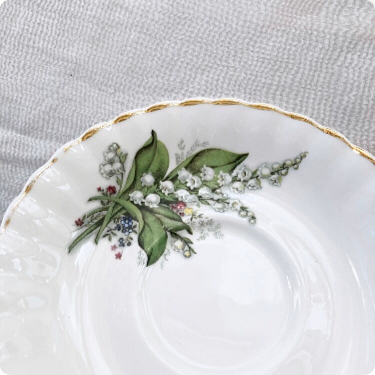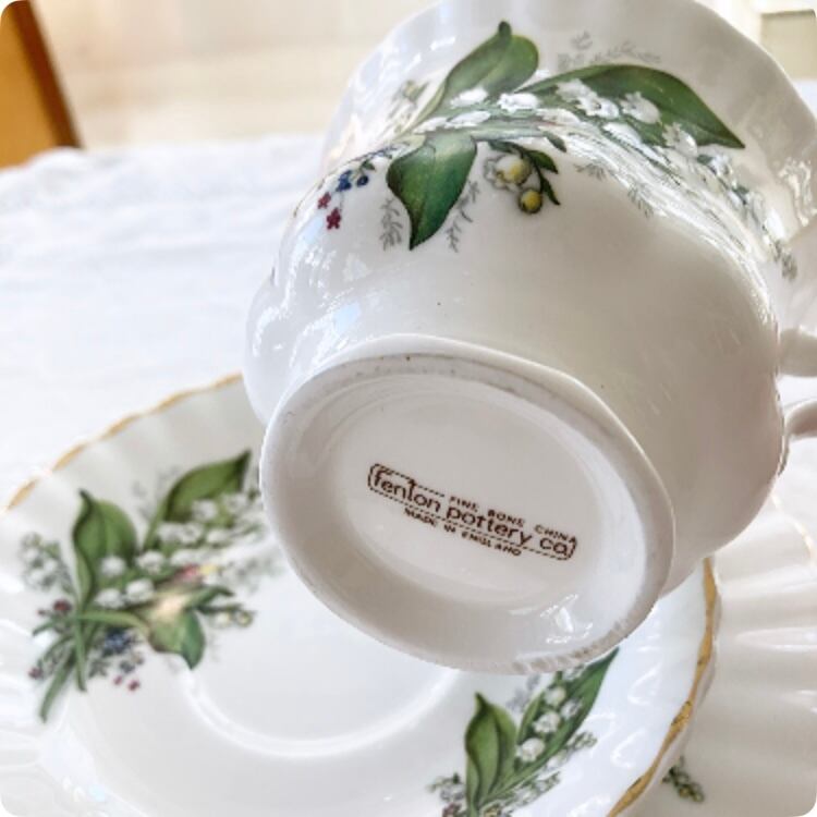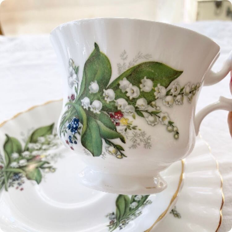 エレガントで愛らしいフォルムと鈴蘭の絵柄 カップ&ソーサー(トリオ)②