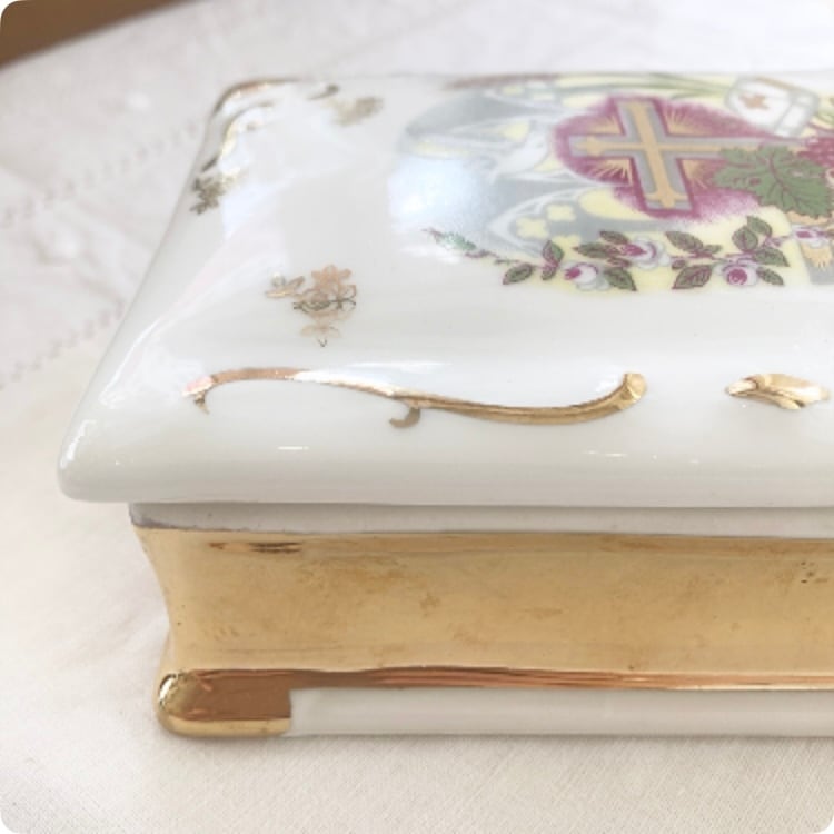 フランス直輸入の華やかな陶器製小物入れです。