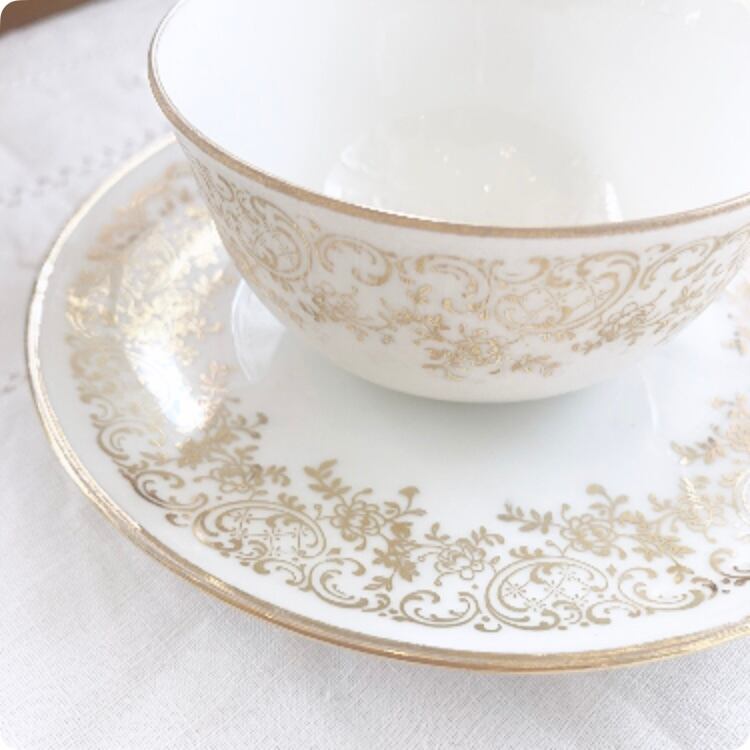 フランス直輸入のホワイトとゴールドカラーが際立つ、シンプルで上品なカップ&ソーサーです。