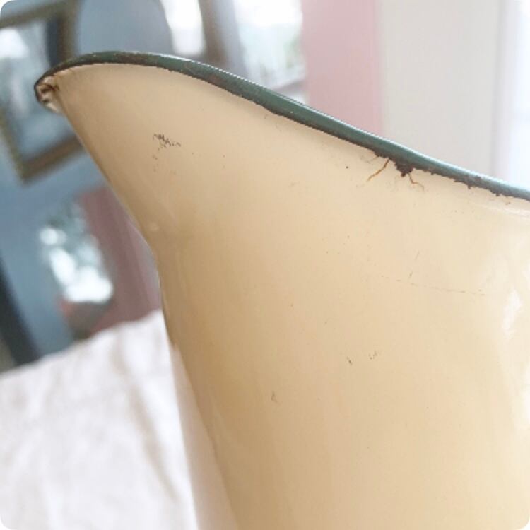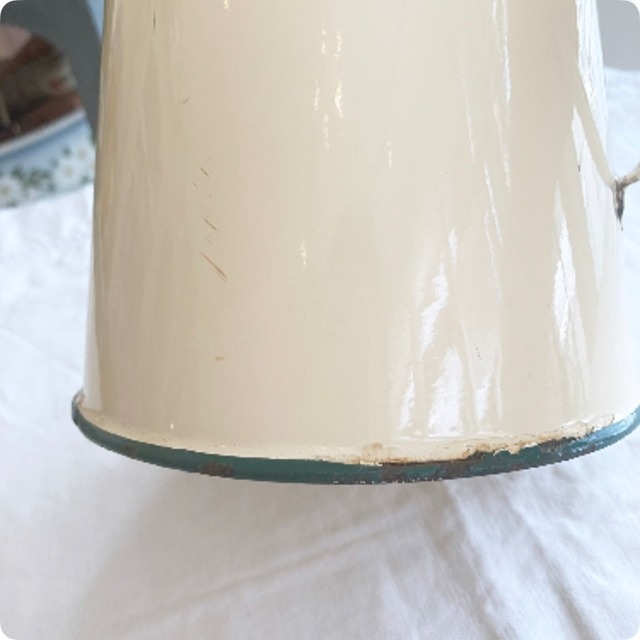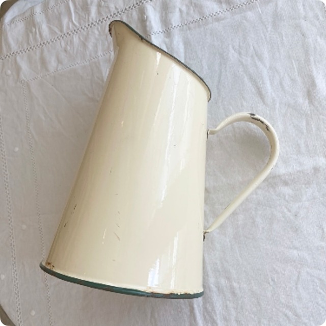 フランス直輸入のヴィンテージホーロージャグは、シンプルなフォルムと優しいアイボリーカラーが特徴です。
