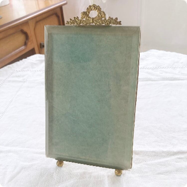 【フランス直輸入】真鍮 のオルモル装飾が美しいアンティーク ガラス製フォトフレーム 20 cm