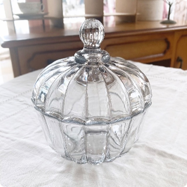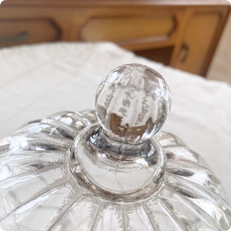 フランス直輸入の、涼し気なガラス製素材のヴィンテージキャンディポットです。