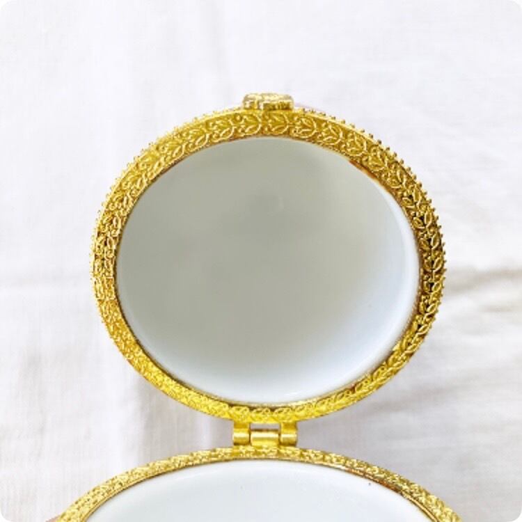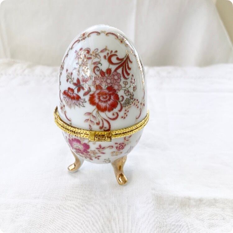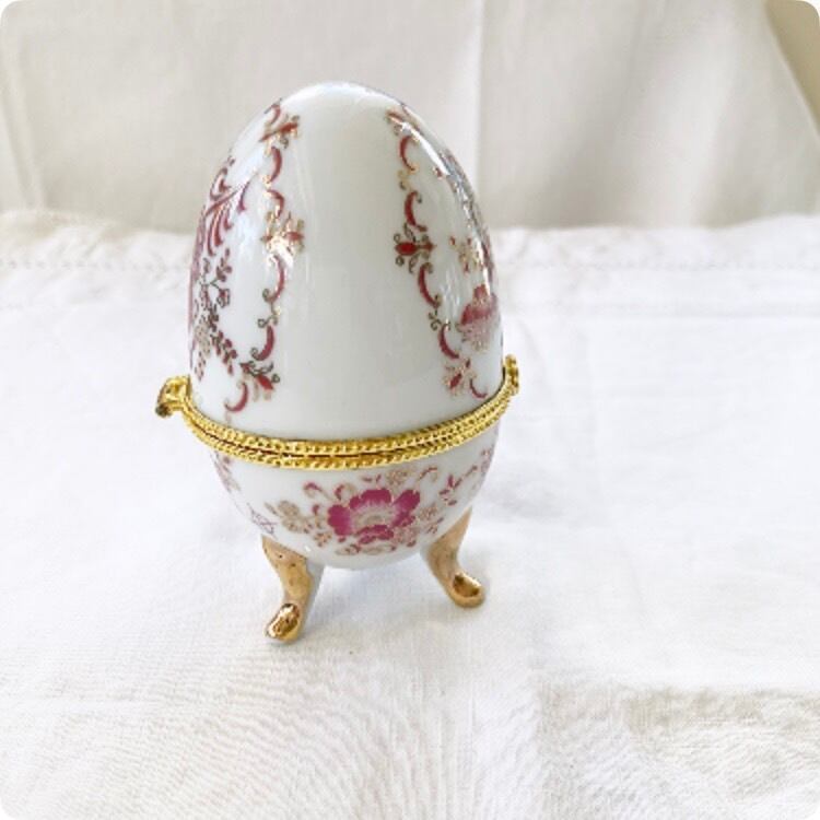 【フランス直輸入】女性らしく優しい色合いが美しい 卵型 陶器製小物入れ