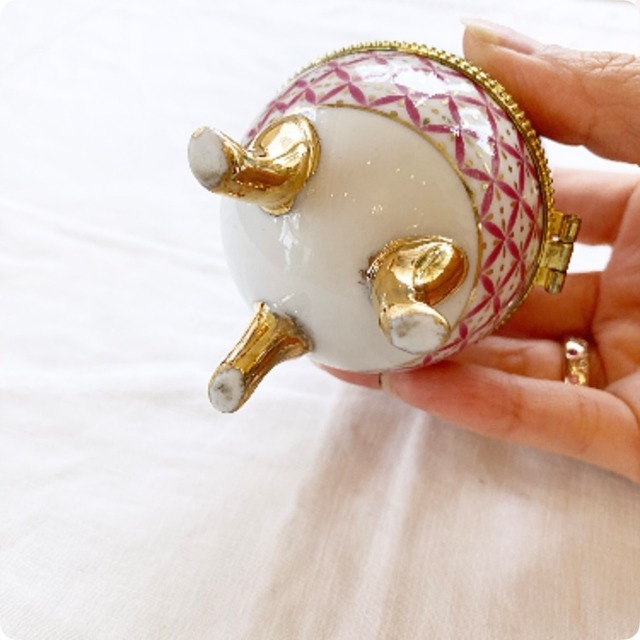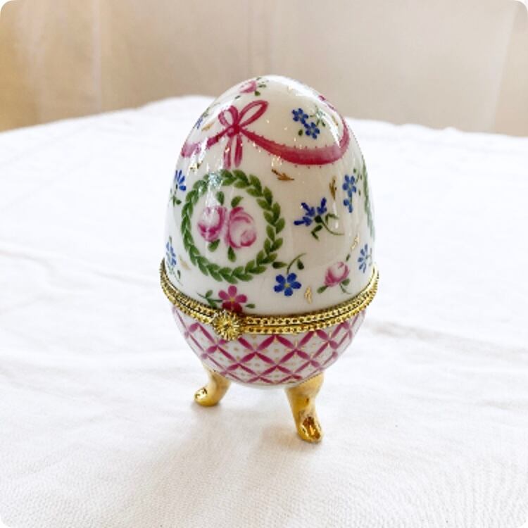 フランスから届いたばかりの、魅力的な卵型の小物入れです。