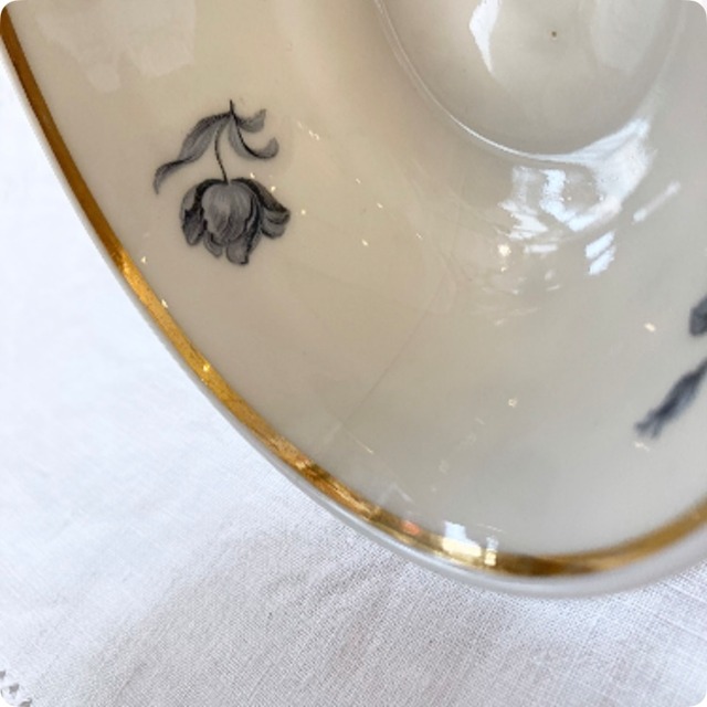 カップに薄っすらとヒビが入っております。水を入れて漏れを確認しておりますが、現時点では数時間置いても水漏れはございませんでした。ただ、観賞用、インテリアとしてもご使用をおすすめします。金彩も比較的綺麗に残っているかと思います。