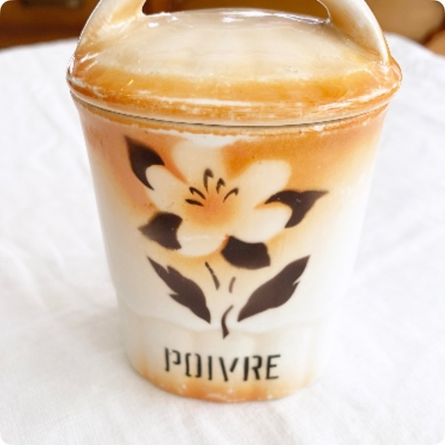 フランス直輸入の、ペッパー(コショウ)を保存するための磁器製アンティークキャニスターです。