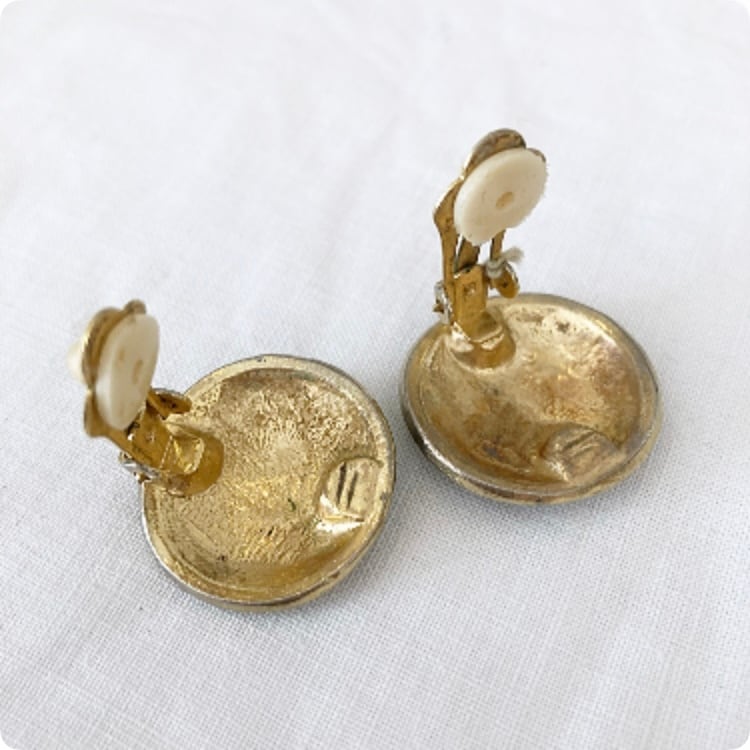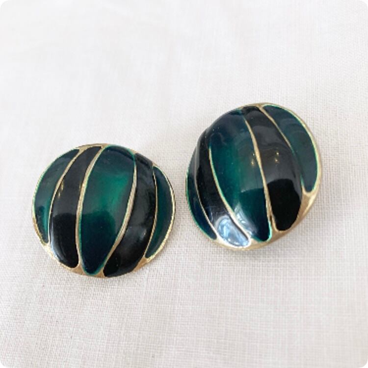 こちらはフランスから直輸入した、シックで落ち着いた印象のヴィンテージのグリーンカラーのイヤリングです。