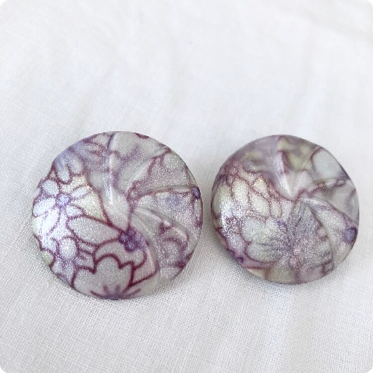 こちらはフランスから直輸入した、パリで人気の和風柄デザインが施されたラベンダーカラーのヴィンテージイヤリングです。