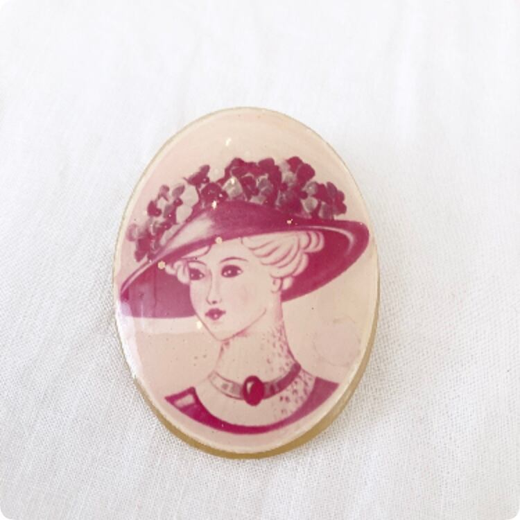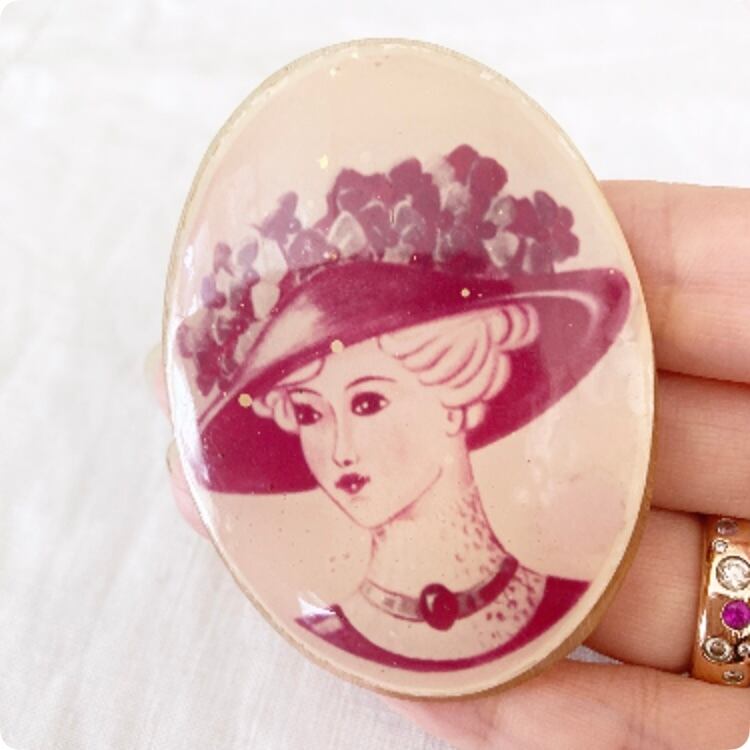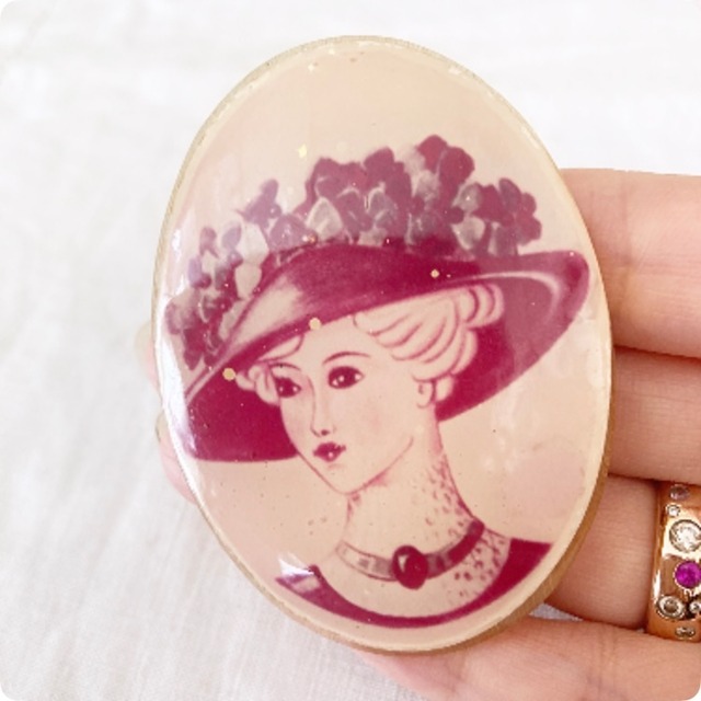 【フランス直輸入】エレガントな貴婦人の絵柄が魅力的 ヴィンテージブローチ