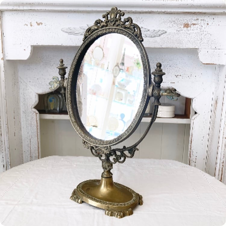 【フランス直輸入】存在感抜群!デコラティブな アンティークミラー(置き鏡)