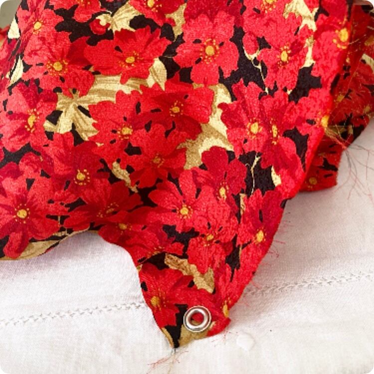 [フランス直輸入] 黒地に鮮やかな赤が映える ヴィンテージシルク布地(長方形)