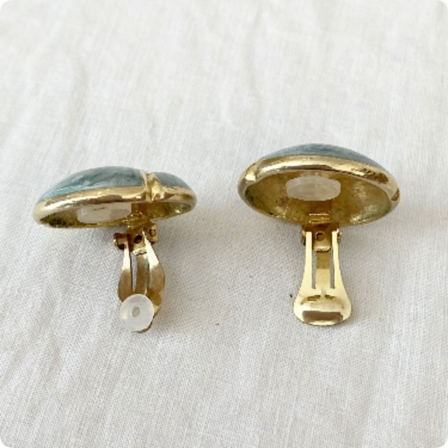 こちらはフランスから買付けた、マーブル模様とくすみブルーカラーが魅力的なヴィンテージイヤリングです。