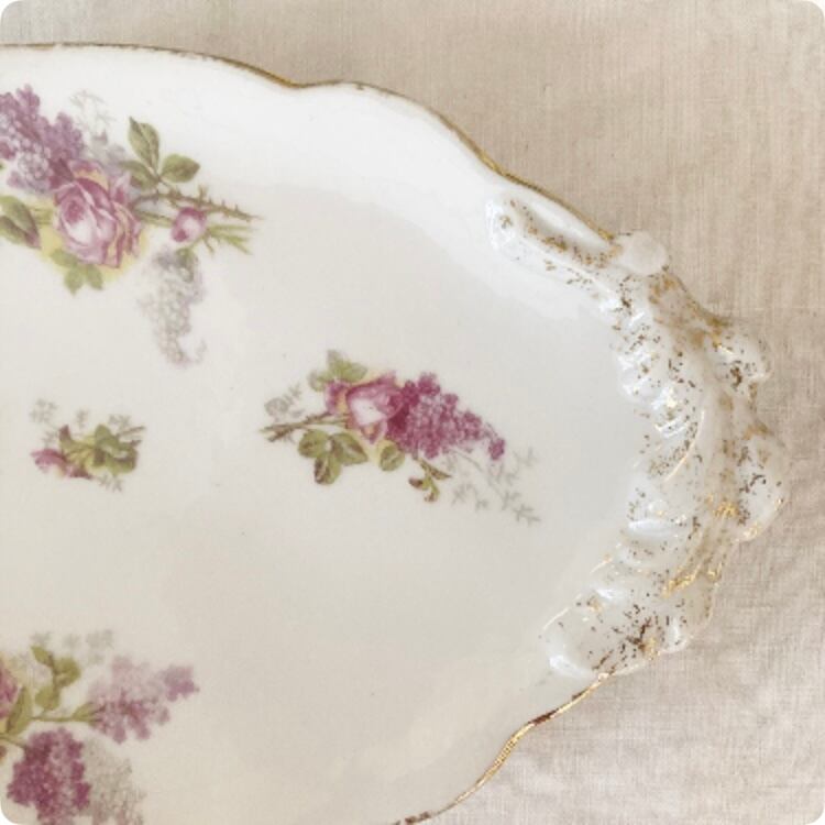 こちらのアンティーク ラヴィエ皿は、可憐な花柄が印象的で、お料理を引き立てる素敵なデザインが特徴です。