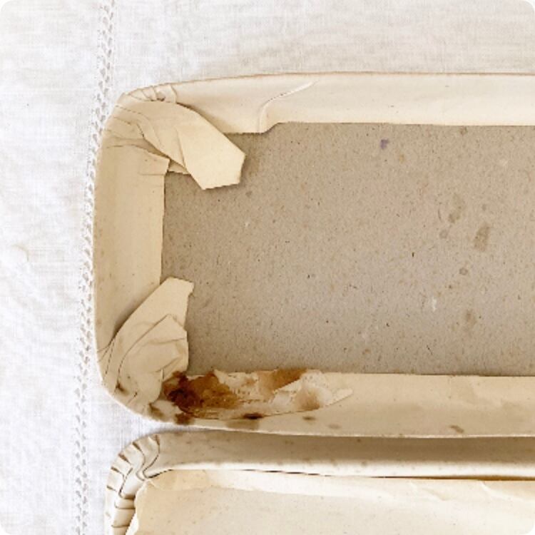 側面や底面にシミや剥がれが少しございます。全体的に薄っすらと変色が見受けられ、アンティークの風合いが増し素敵な印象となっております。感じ方には個人差がございますので、画像をよくご覧になってください。