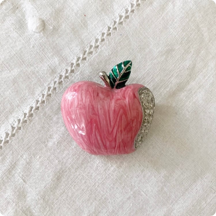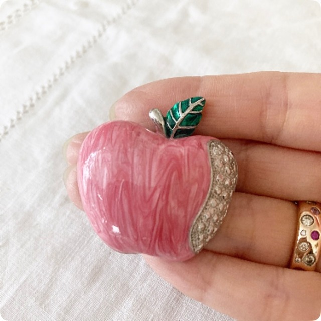 【フランス直輸入】ピンクカラーのアップル(林檎)モチーフがとにかく可愛い ヴィンテージブローチ