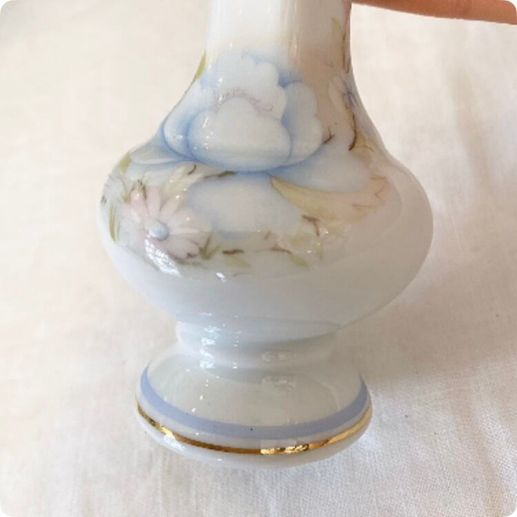 ぜひ、この機会に淡いブルーとお花に包まれた特別な一輪挿しをお迎えくださいませ!
