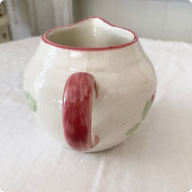 このヴィンテージミルクピッチャーは、ぽってりとコロンとしたフォルムと優しいピンクカラーが特徴で、見るだけで心が和む可愛さを持っています。