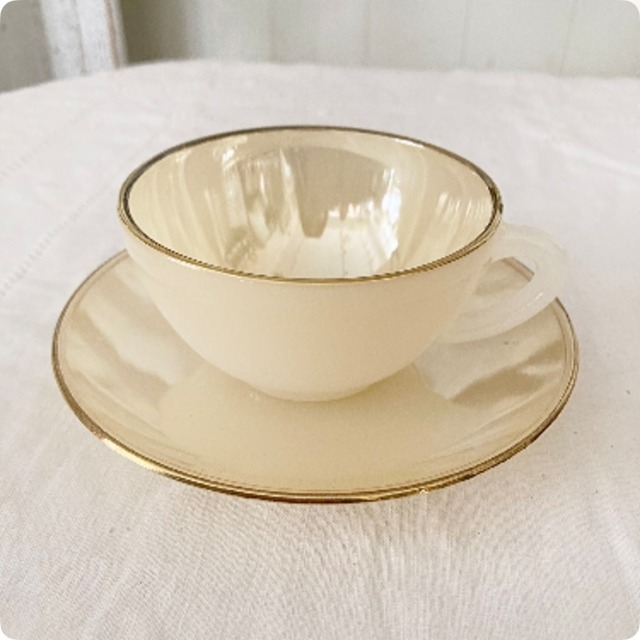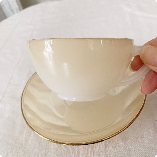 可愛らしいクリーム色のミルクガラス製カップ&ソーサーです。