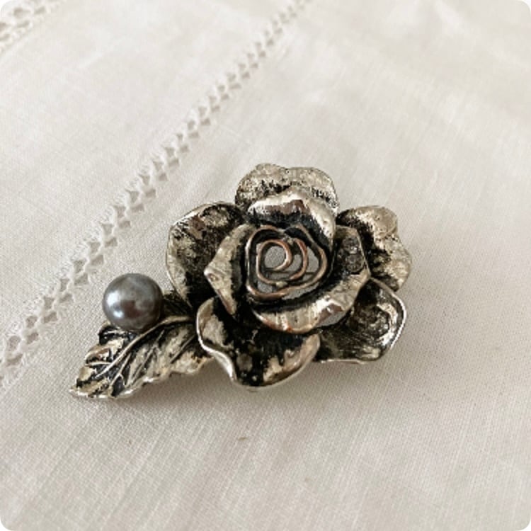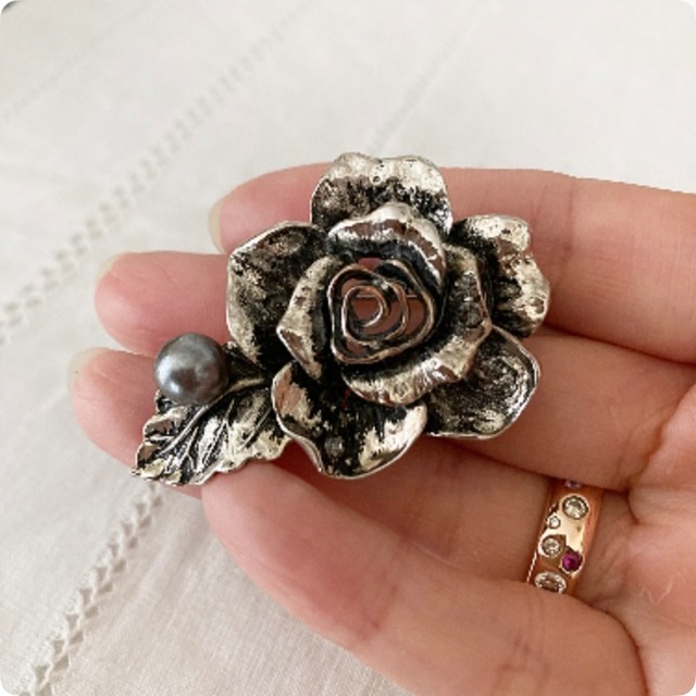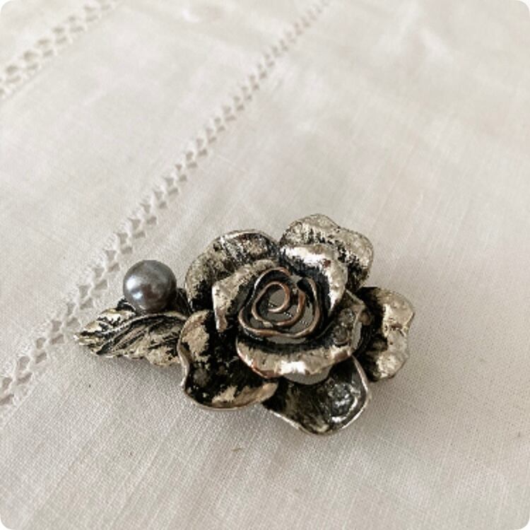 【フランス直輸入】グレーの薔薇で大人シックな印象に ヴィンテージブローチ