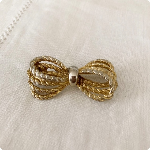 【フランス直輸入】洗練されたデザインが素敵 リボンモチーフ ヴィンテージ ブローチ