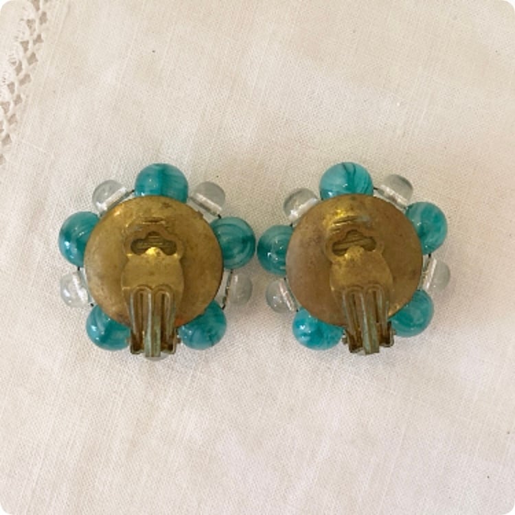 【フランス直輸入】存在感抜群!鮮やかなブルーカラーに心奪われる ヴィンテージイヤリング