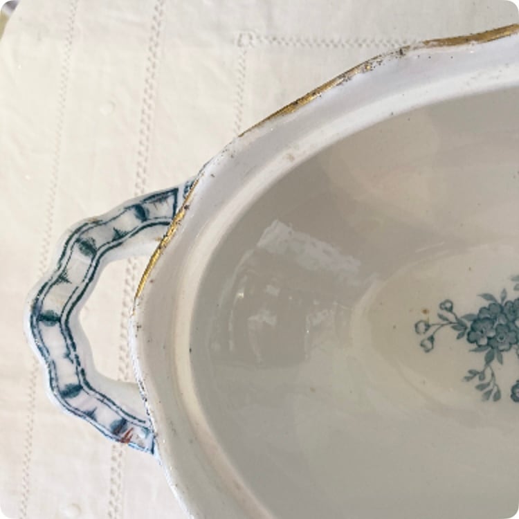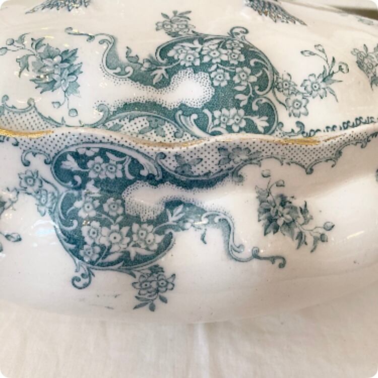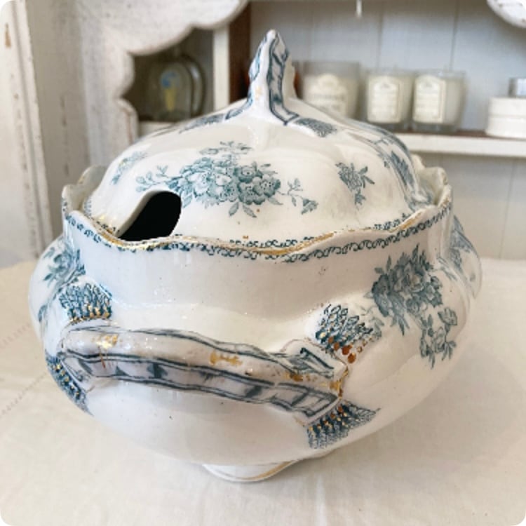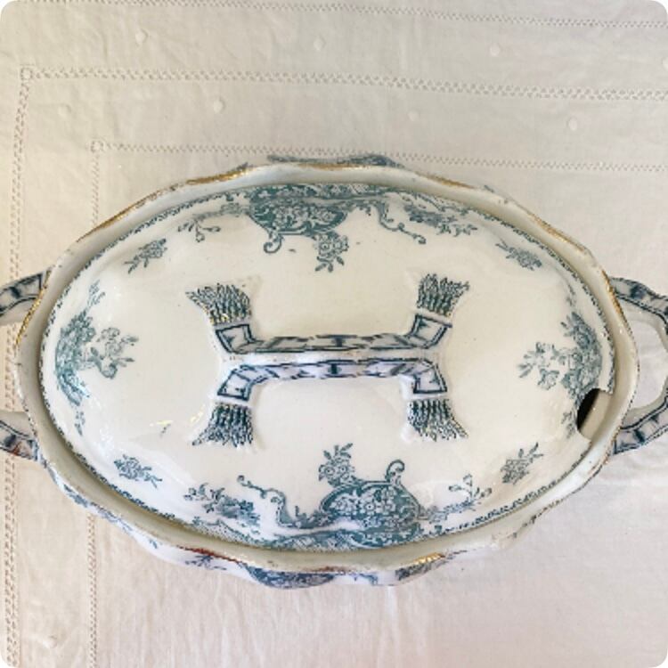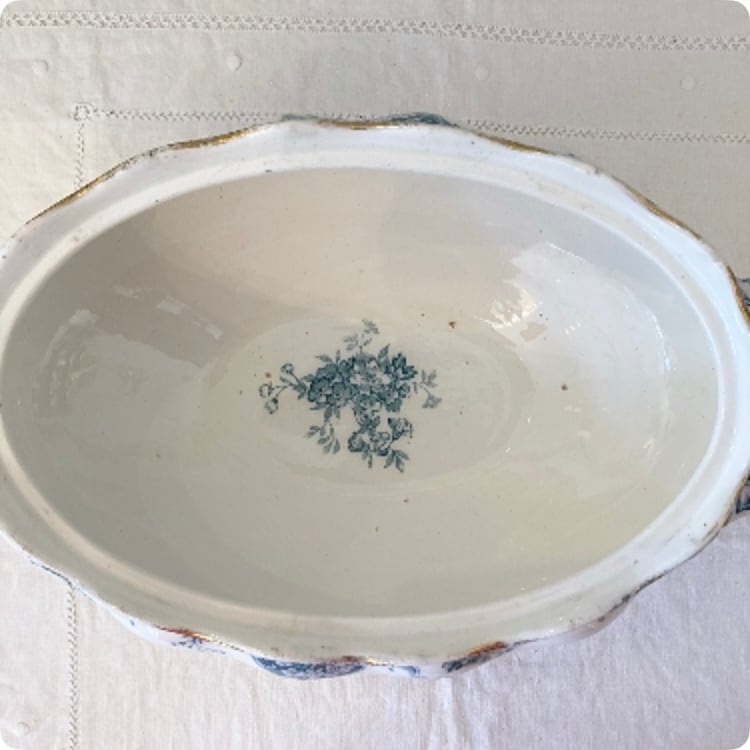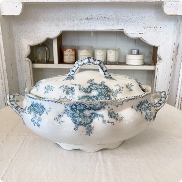 このショーター&サン はイギリスの陶磁器メーカーのもので、こちらのスーピエールは、白地に鮮やかなブルーが映えるデザインが特徴です。