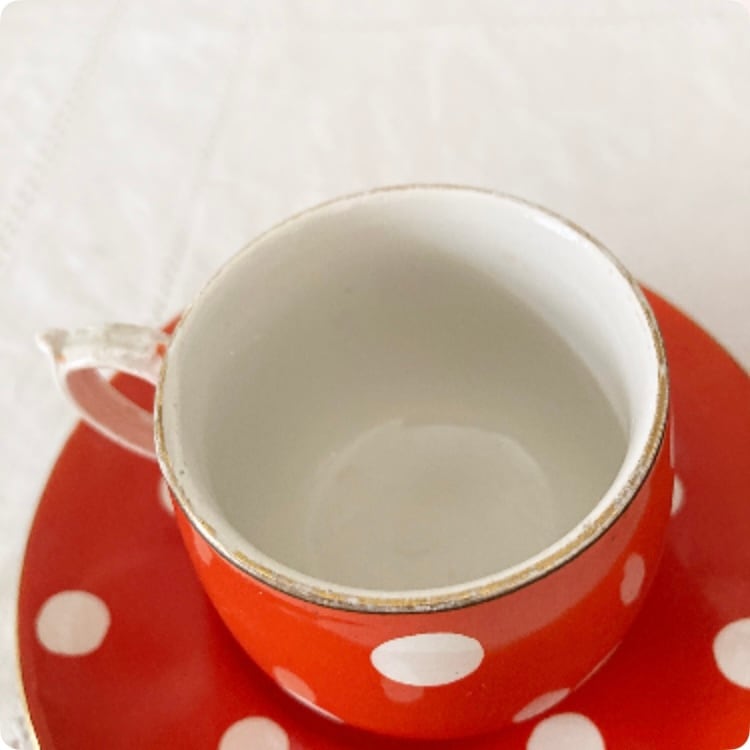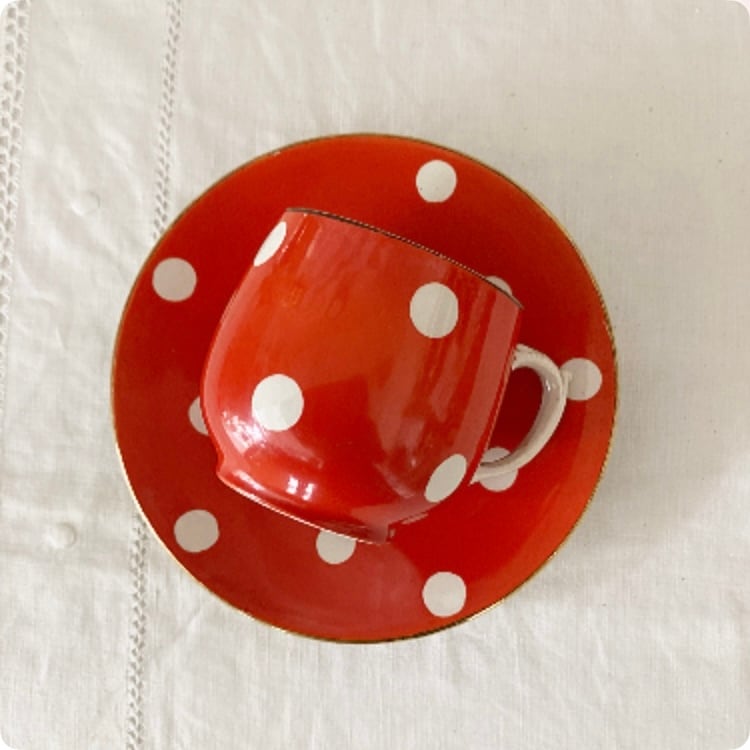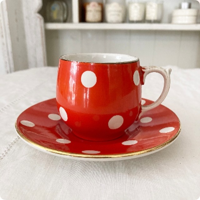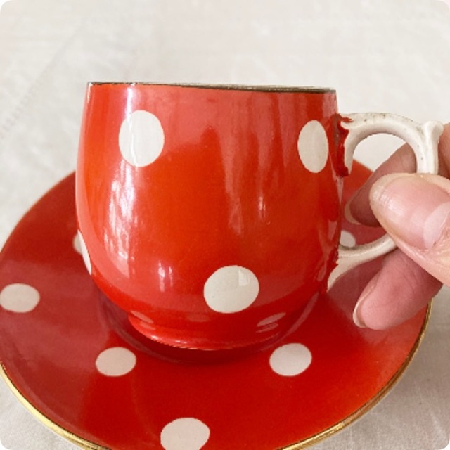 【フランス直輸入】レトロな赤の水玉模様が可愛らしい ディゴワン・サルグミンヌ・ポルカドット アンティーク カップ&ソーサー①