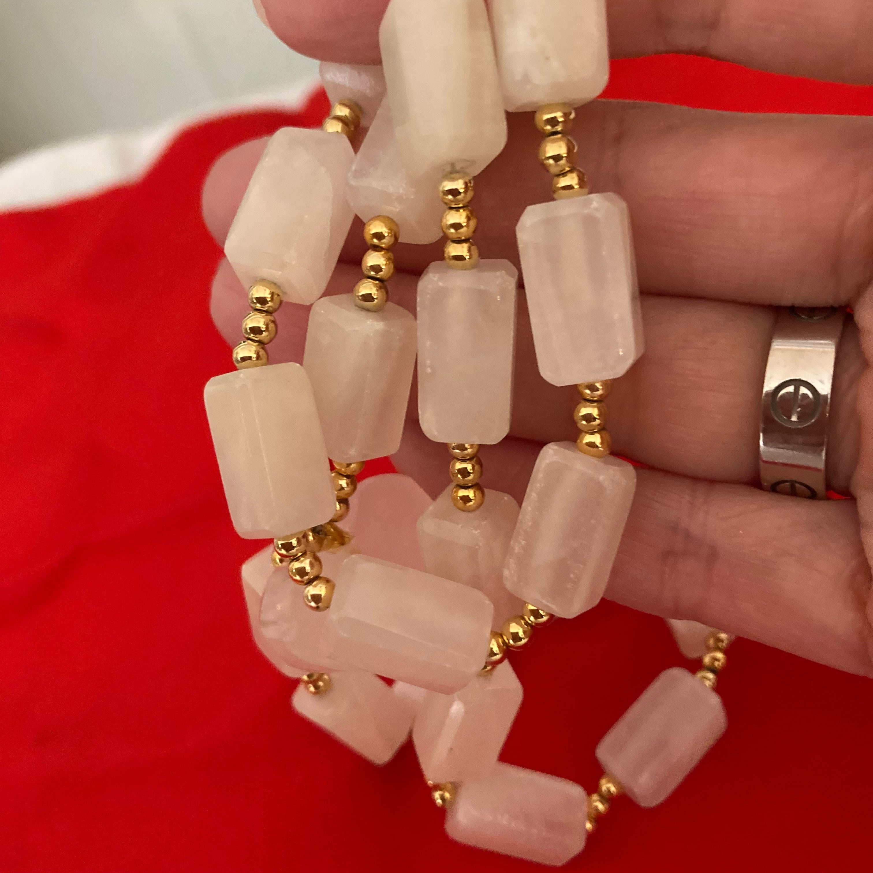 ムーンストーンとゴールドのビーズを用いた素敵なヴィンテージネックレスです。