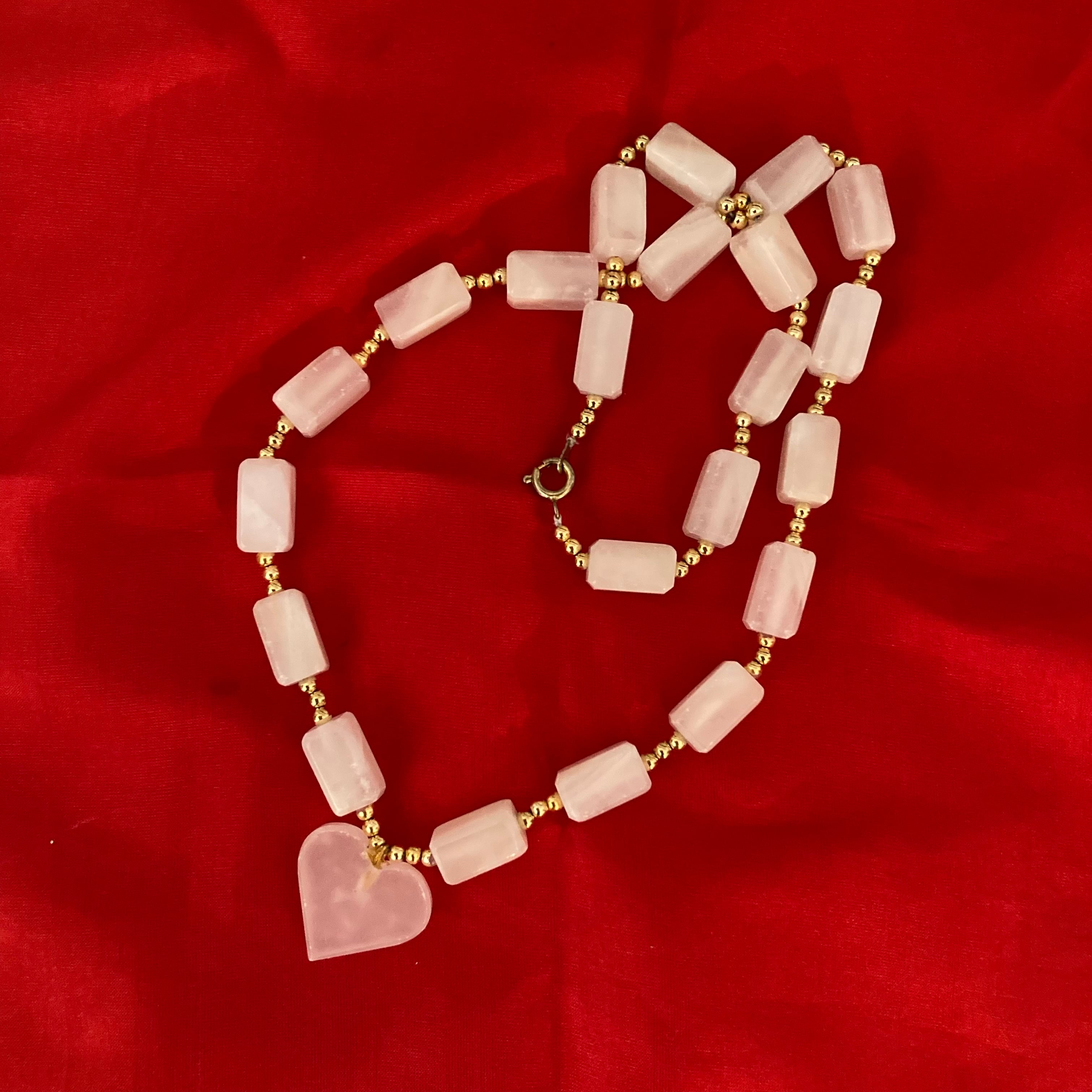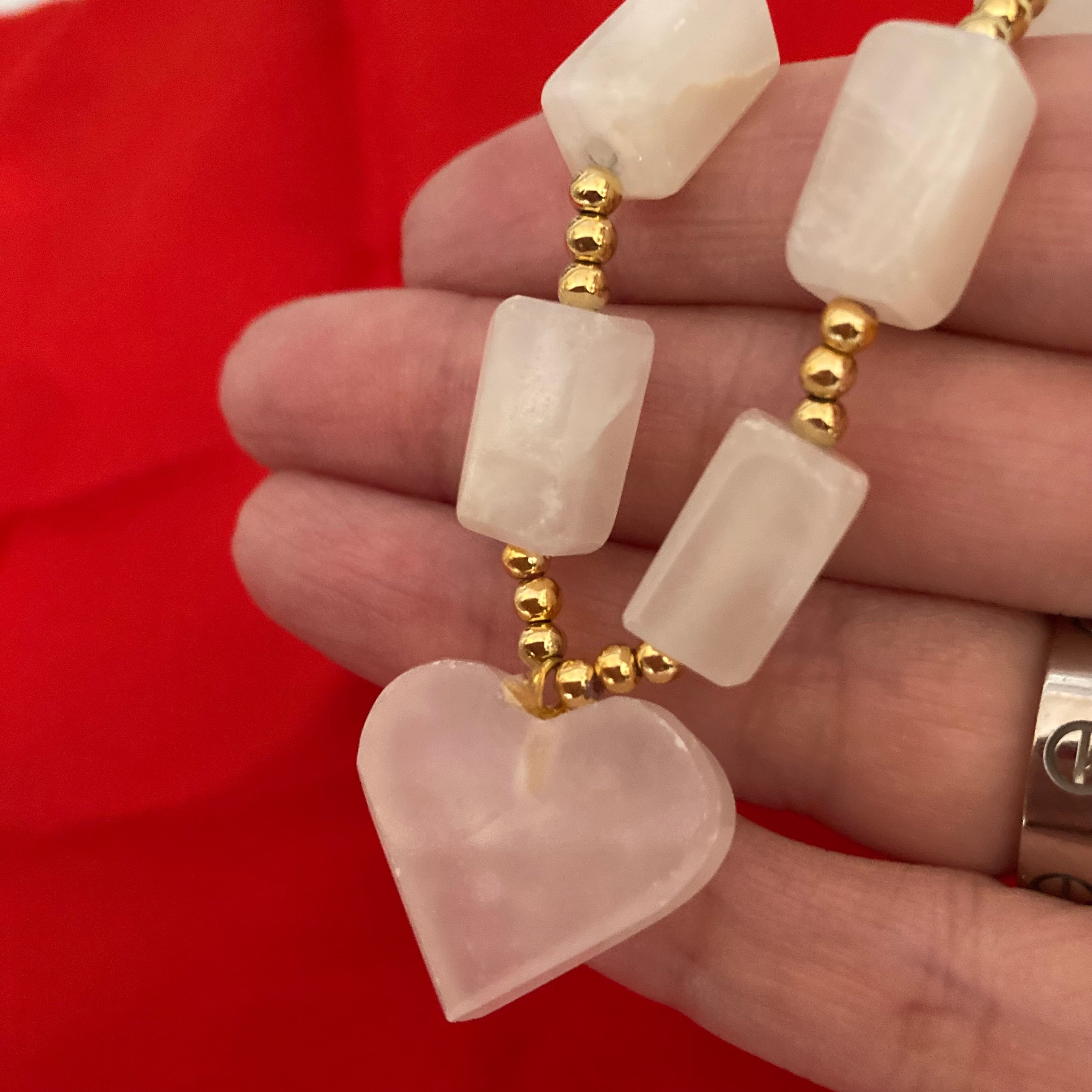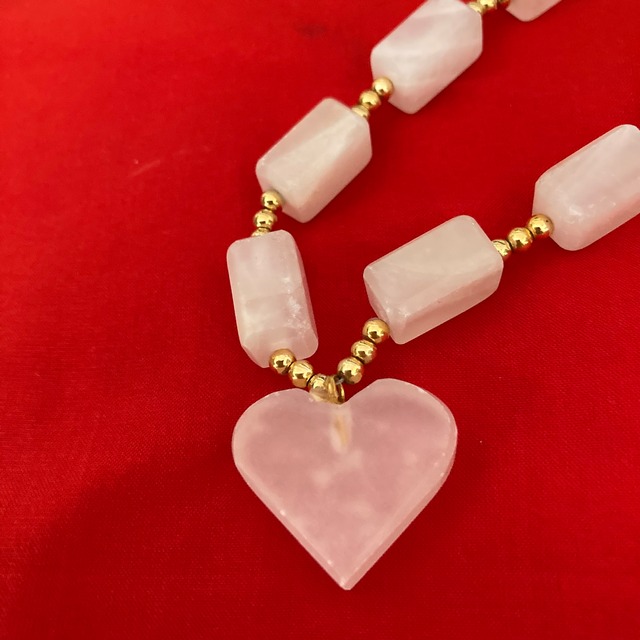 【フランス直輸入】ムーンストーンとゴールドのビーズが素敵 ヴィンテージ ハート型 ネックレス