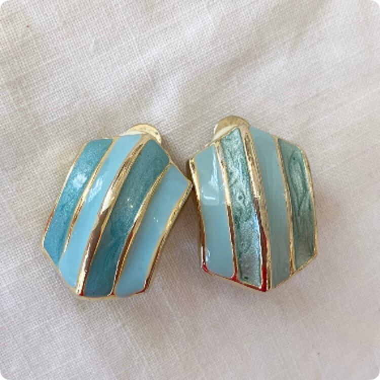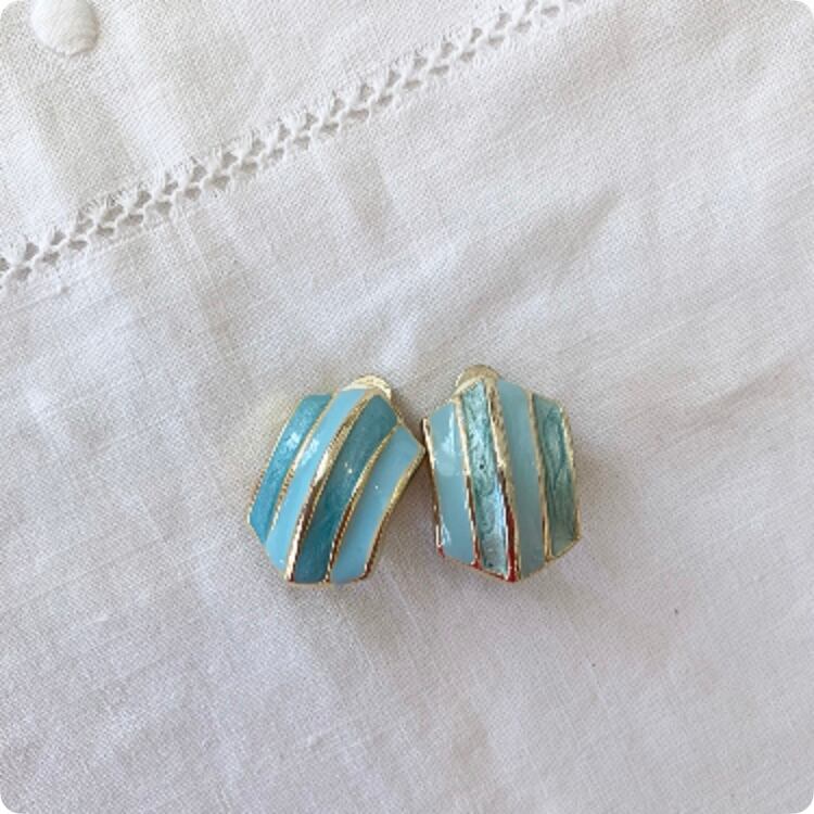 【フランス直輸入】淡いブルーでクールで大人っぽい印象に ヴィンテージイヤリング