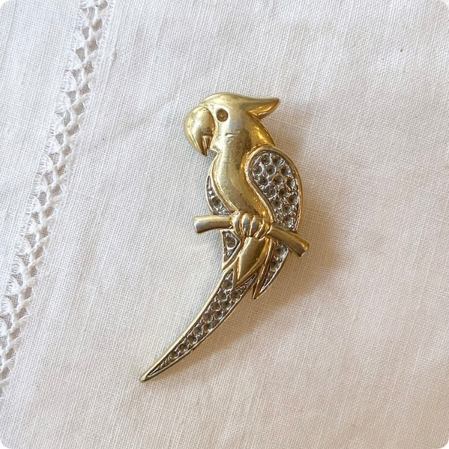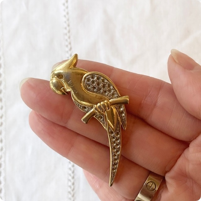 【フランス直輸入】視線をひく存在感 ユニークなオウムモチーフ ヴィンテージブローチ