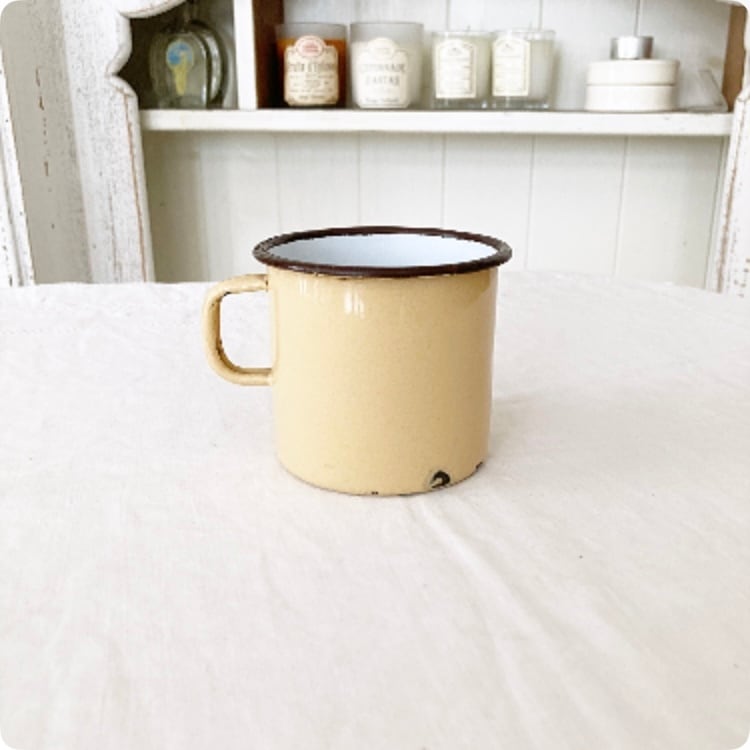 【フランス直輸入】 素朴でレトロな花柄が素敵 ヴィンテージ ホーロー製 マグカップ