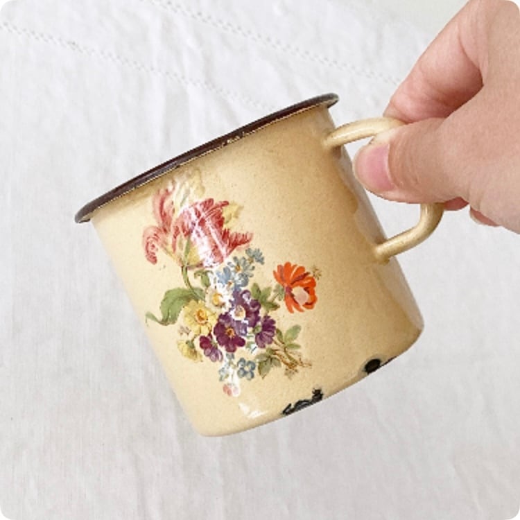 ■素朴でレトロな魅力が満載!花柄のヴィンテージホーローカップ